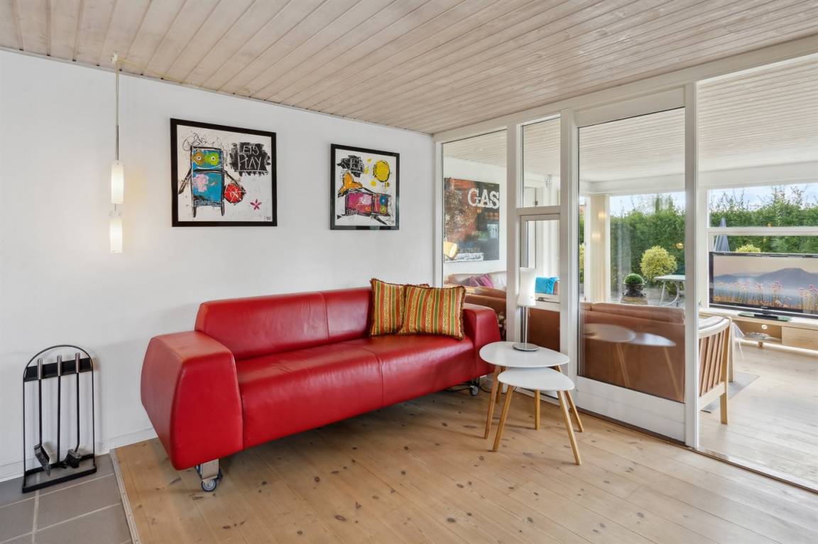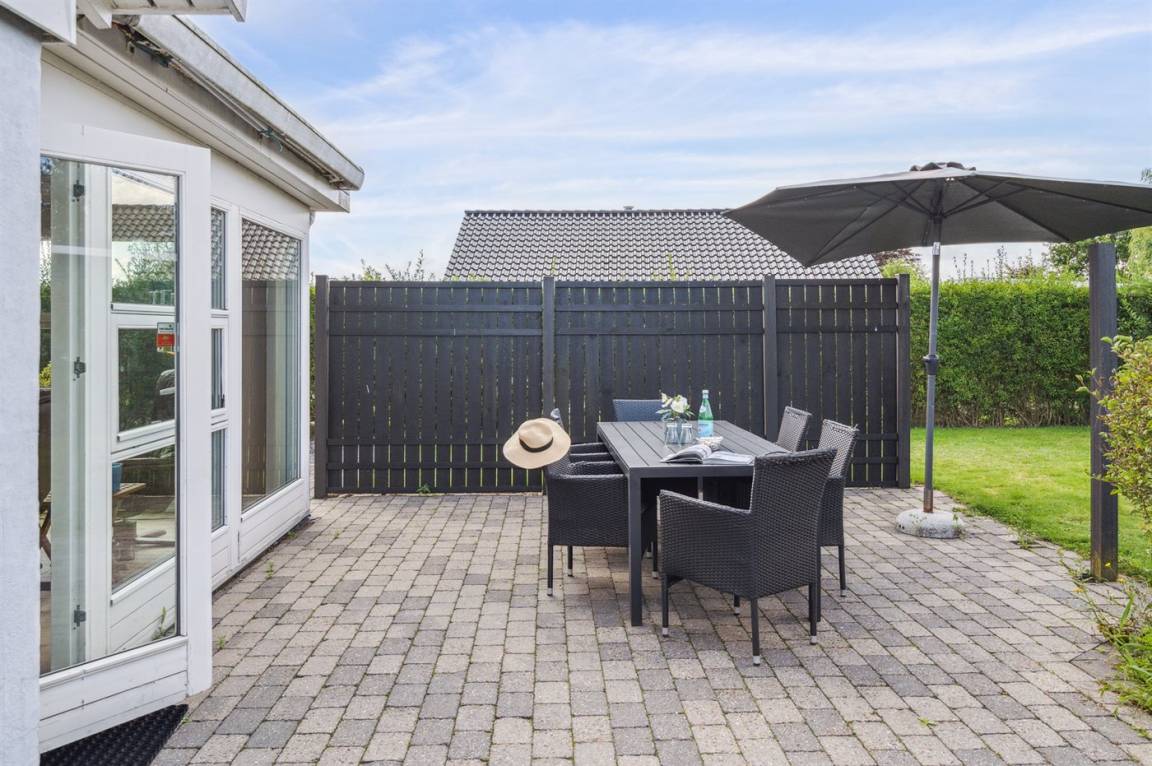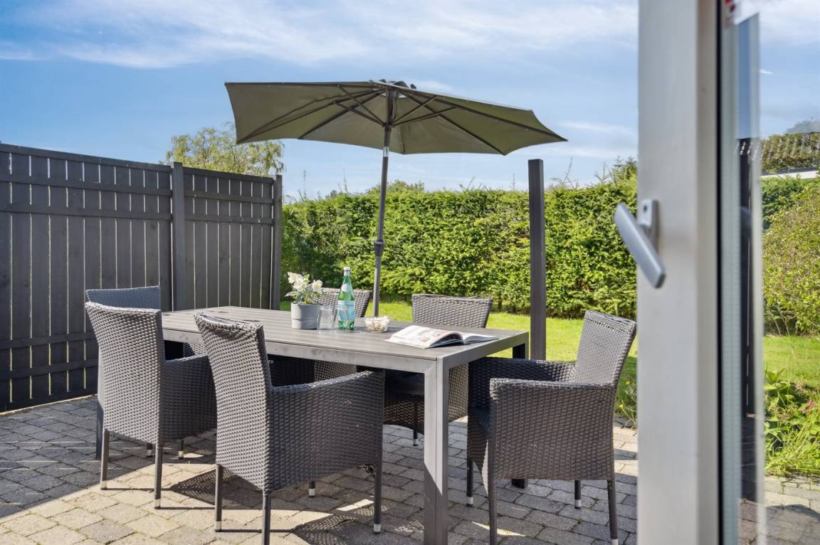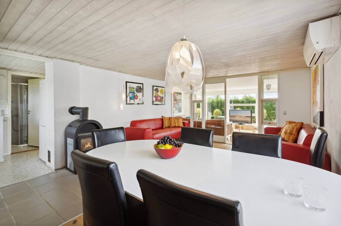 Geräumiges Ferienhaus am Ende einer Sackgasse nahe am Wasser und schönem Badestrand gelegen. Das Haus liegt auf einem kleineren abgeschirmten Grundstück mit ungeniert gelegenen Terrassenarealen und einem Gästehaus mit eigenem Bad und Toilette mit 2 der Schlafplätze.