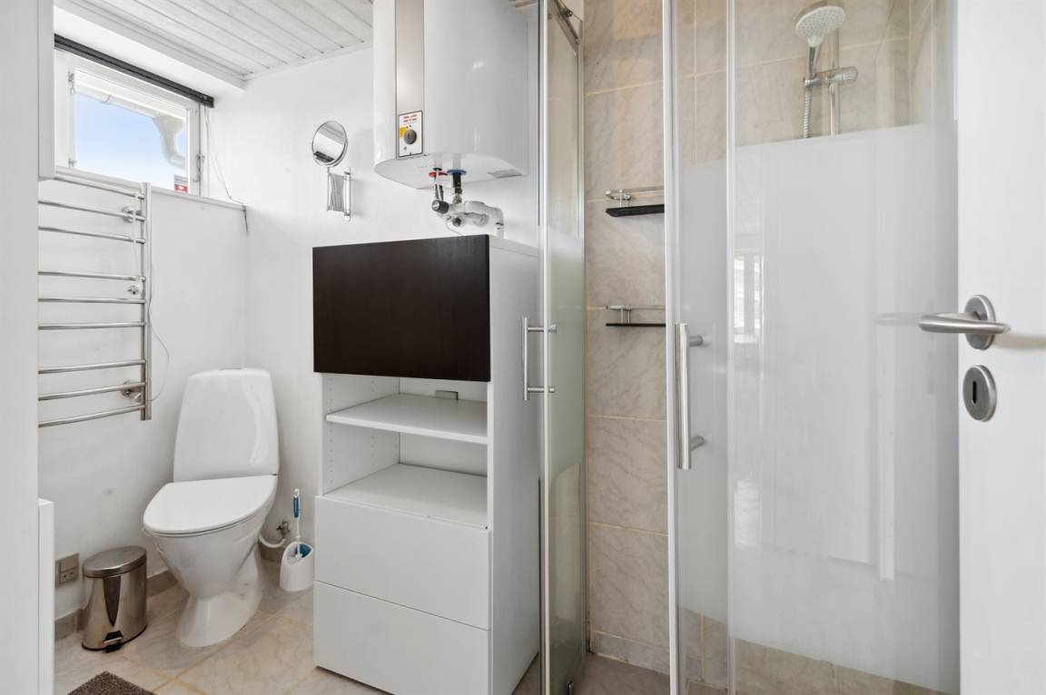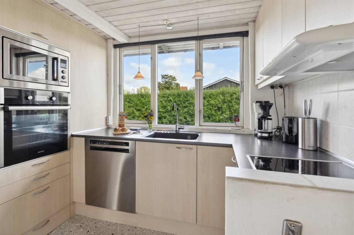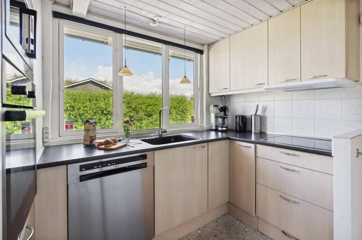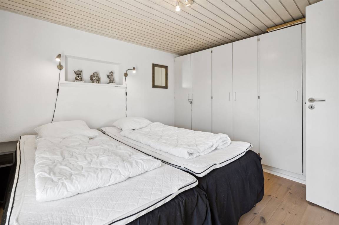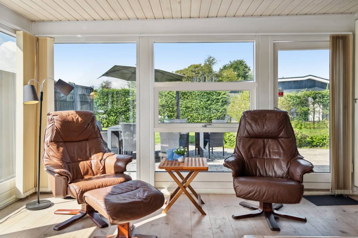 Geräumiges Ferienhaus am Ende einer Sackgasse nahe am Wasser und schönem Badestrand gelegen. Das Haus liegt auf einem kleineren abgeschirmten Grundstück mit ungeniert gelegenen Terrassenarealen und einem Gästehaus mit eigenem Bad und Toilette mit 2 der Schlafplätze.