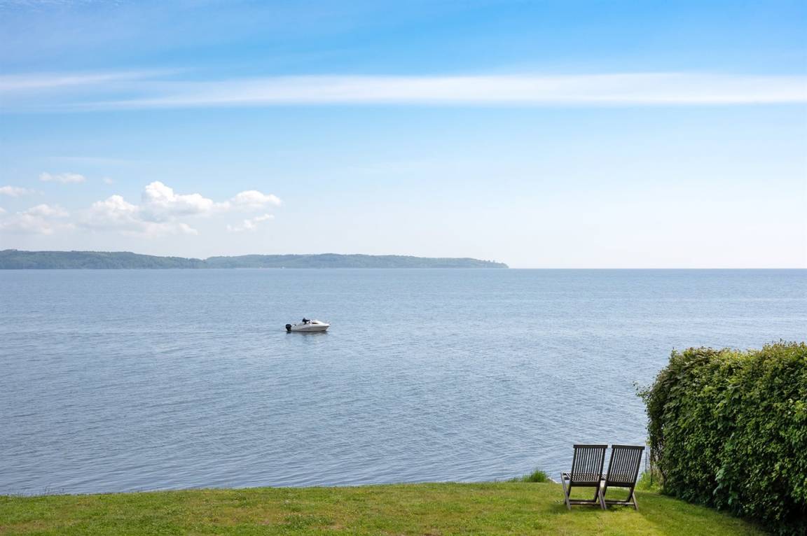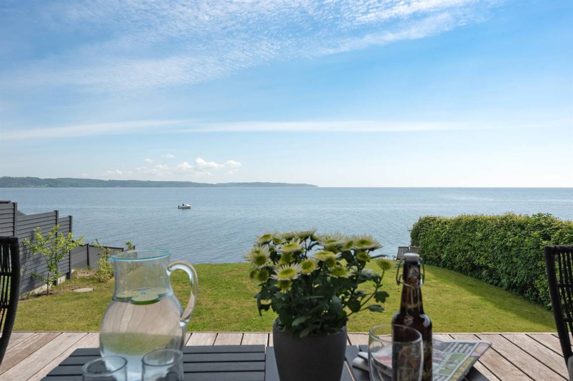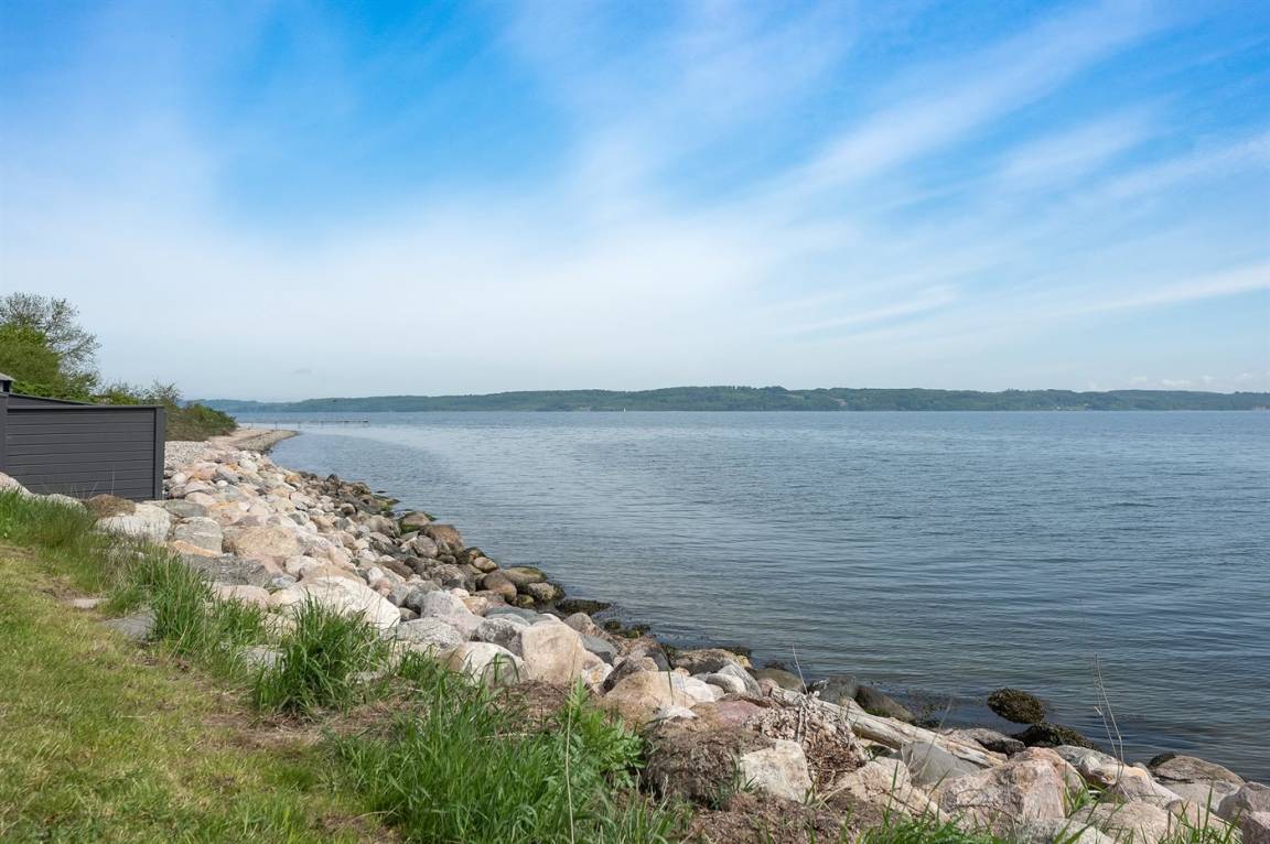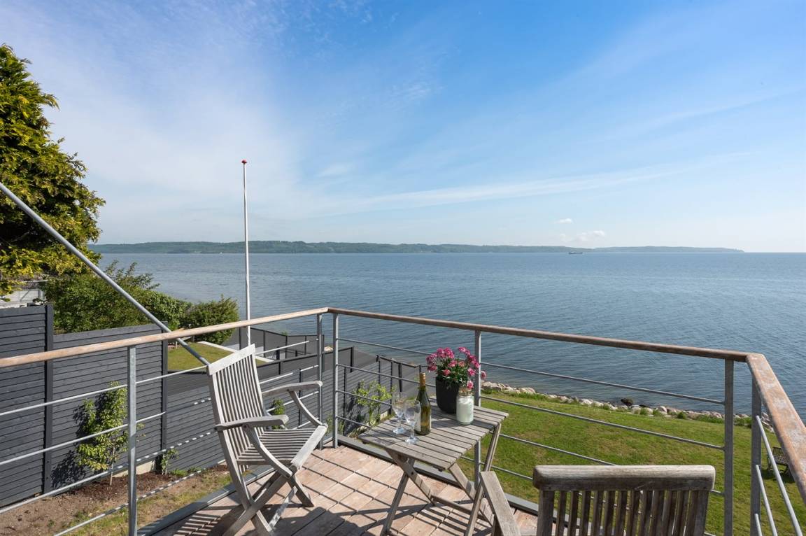 In vorderster Reihe zum Wasser liegt dieses fantastische Ferienhaus mit einem einzigartigen 180-Grad-Panoramablick auf den Vejle Fjord. Von Terrasse, Balkon und Haus haben Sie einen schlichtweg fantastischen Ausblick – eine bessere Lage ist schwer zu finden. Die Gegend ist ruhig und von malerischer Natur geprägt.