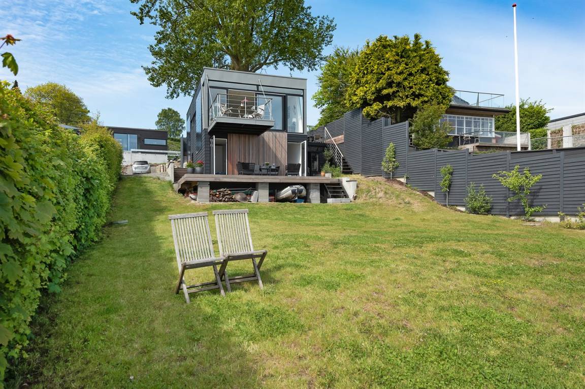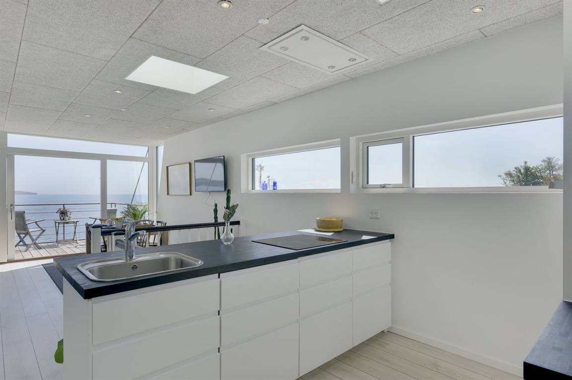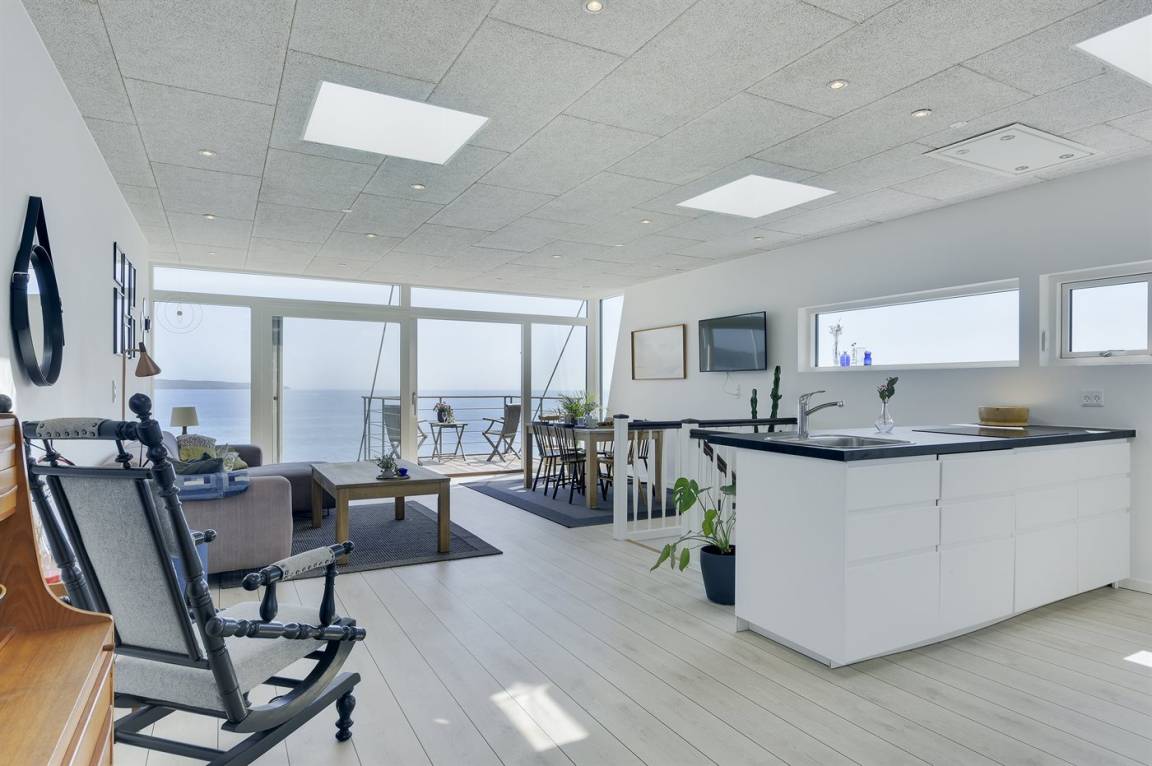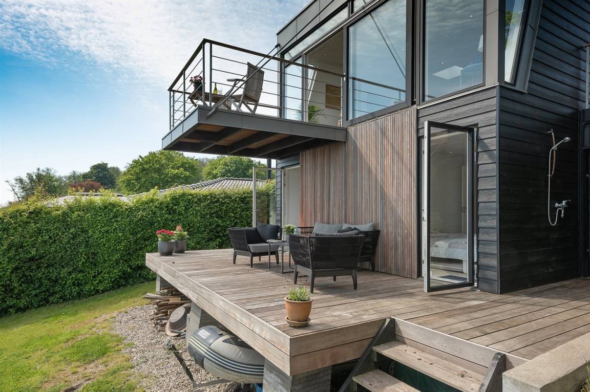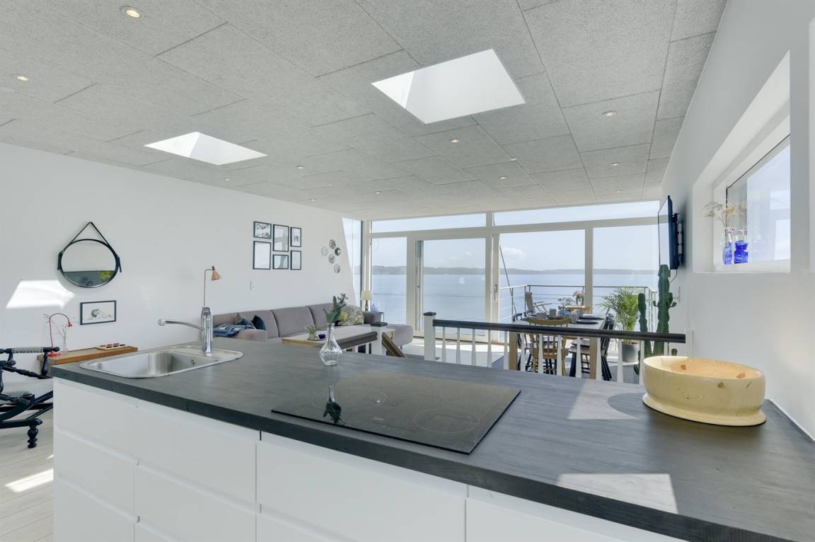 In vorderster Reihe zum Wasser liegt dieses fantastische Ferienhaus mit einem einzigartigen 180-Grad-Panoramablick auf den Vejle Fjord. Von Terrasse, Balkon und Haus haben Sie einen schlichtweg fantastischen Ausblick – eine bessere Lage ist schwer zu finden. Die Gegend ist ruhig und von malerischer Natur geprägt.