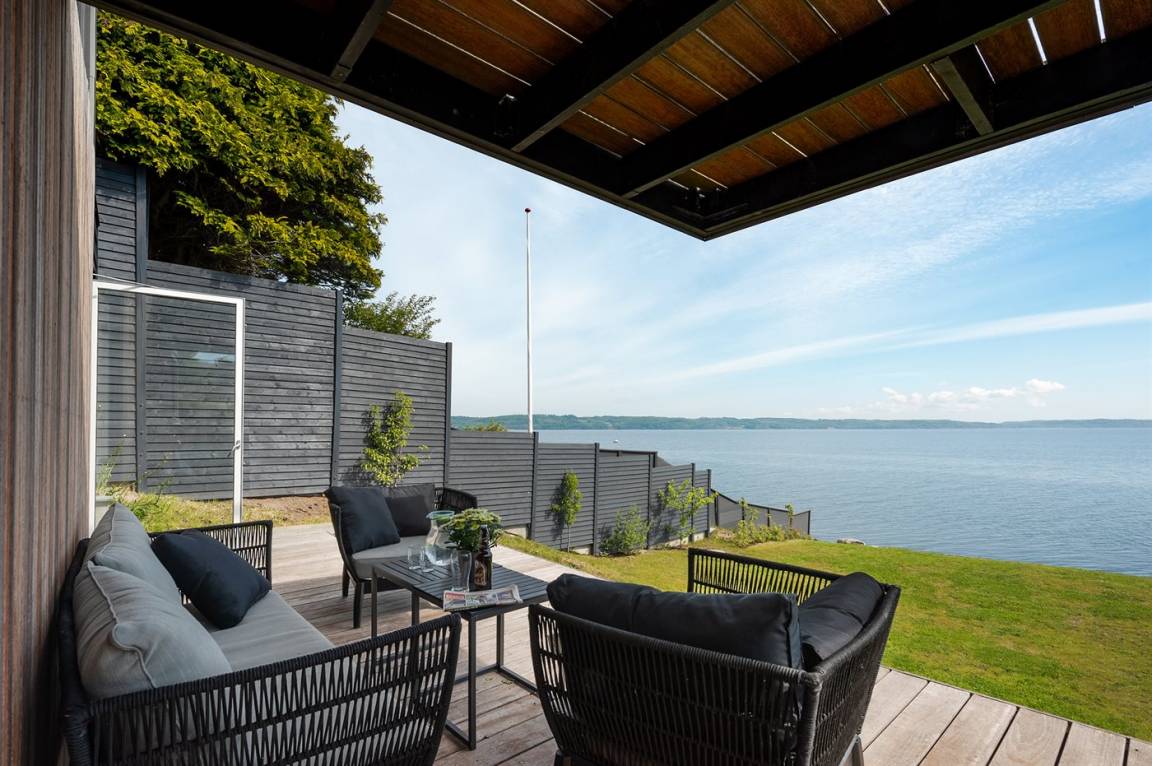 DraußenDie Ferienunterkunft liegt auf einem 600 m² großen Gartengrundstück. Die Entfernung zum Fjord beträgt 10 m. Es gibt einen Badesteg in der Nähe. Die nächste Einkaufsmöglichkeit liegt 3600 m entfernt. In einem Abstand von 5800 m gibt es einen Golfplatz. Es steht ein 70 m² Terrassenareal zur Verfügung. Außerdem gibt es 4 m² überdachte Terrasse.Balkon im Obergeschoss. Geräteraum.Lagerfeuerstelle. Außendusche. Es steht ein Grill zur Verfügung. Es ist ein Ladestecker für Elektroautos installiert. Parkplatz auf dem Grundstück.