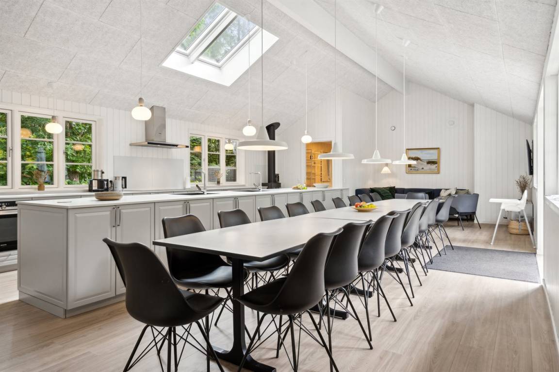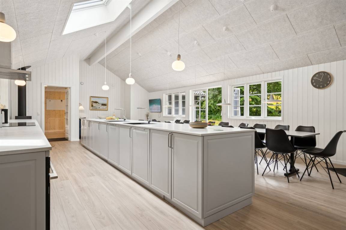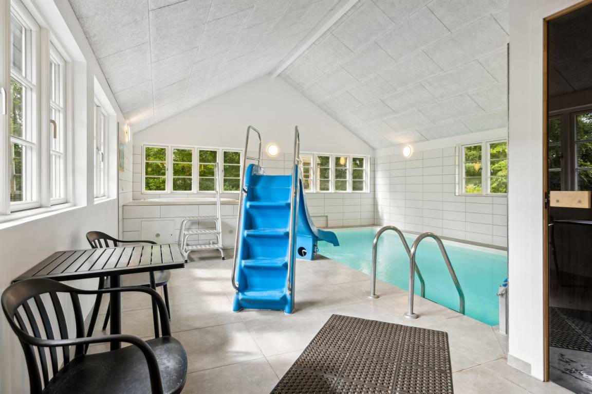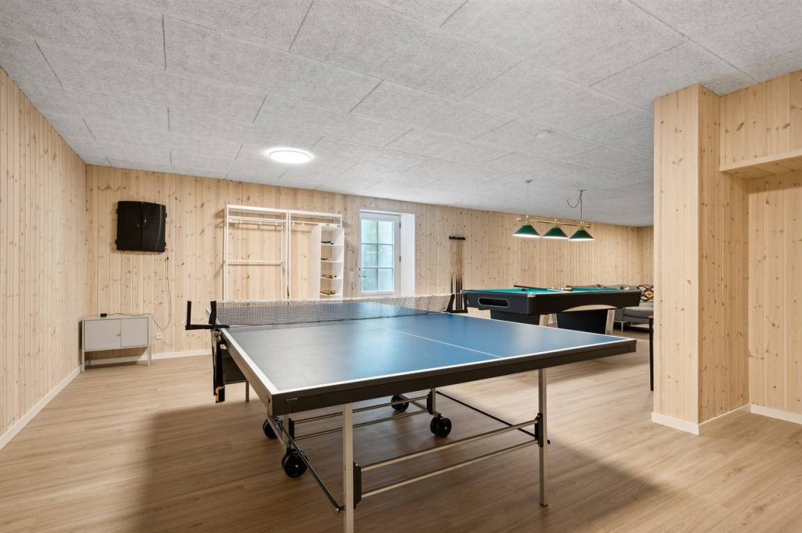 Dieses Ferienhaus ist etwas ganz Besonderes und bietet alle erdenklichen Innenausstattungen, die das Herz begehrt. Von dem großen und einladenden Swimmingpool mit Wasserrutsche bis hin zu dem großen und herrlichen Whirlpool mit Platz für 6 Personen und nicht zu vergessen, dem großen Aktivitätsraum, der eine Vielzahl an Aktivitäten bietet, mit denen sich die ganze Familie stundenlang vergnügen kann. Das Haus mit insgesamt 333 m² wurde in ausgezeichneter Qualität im Jahr 2021 erbaut - hier gibt es viele schöne Details, und das Herz des Hauses ist - neben dem herrlichen Poolbereich - die Wohnküche, in der sich alle Gäste zu unvergesslichen Urlaubserinnerungen versammeln können.