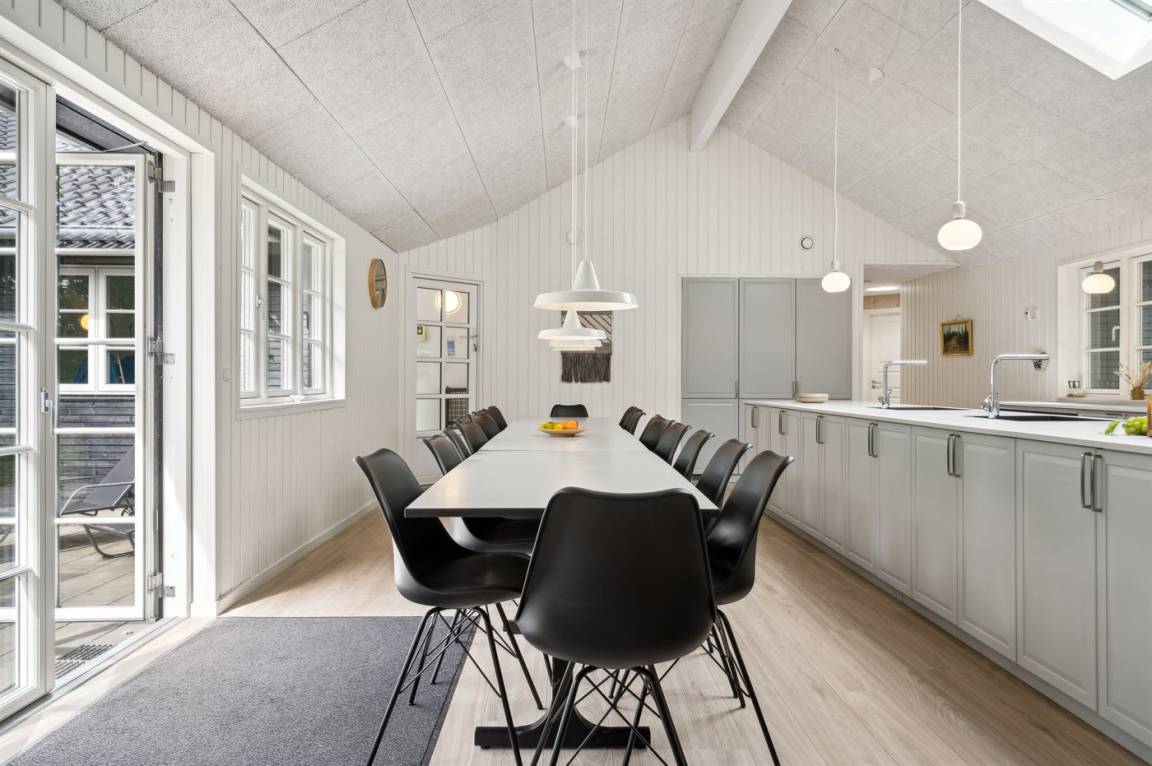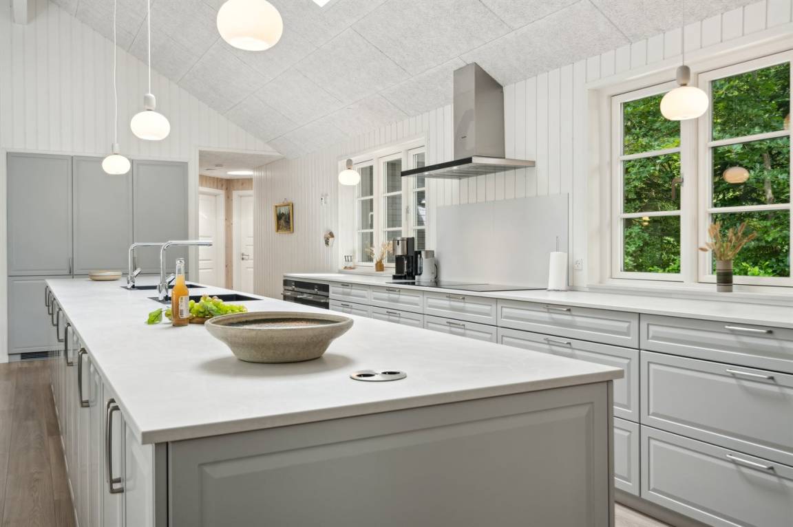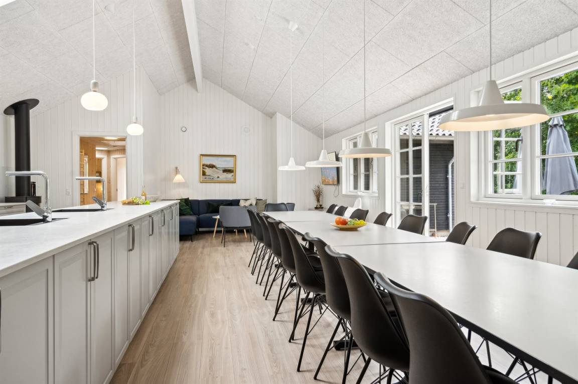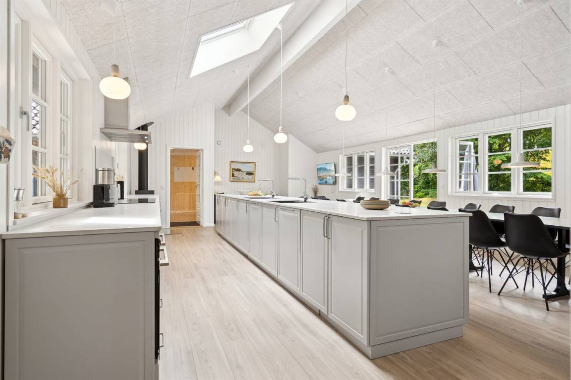Dieses Ferienhaus ist etwas ganz Besonderes und bietet alle erdenklichen Innenausstattungen, die das Herz begehrt. Von dem großen und einladenden Swimmingpool mit Wasserrutsche bis hin zu dem großen und herrlichen Whirlpool mit Platz für 6 Personen und nicht zu vergessen, dem großen Aktivitätsraum, der eine Vielzahl an Aktivitäten bietet, mit denen sich die ganze Familie stundenlang vergnügen kann. Das Haus mit insgesamt 333 m² wurde in ausgezeichneter Qualität im Jahr 2021 erbaut - hier gibt es viele schöne Details, und das Herz des Hauses ist - neben dem herrlichen Poolbereich - die Wohnküche, in der sich alle Gäste zu unvergesslichen Urlaubserinnerungen versammeln können.