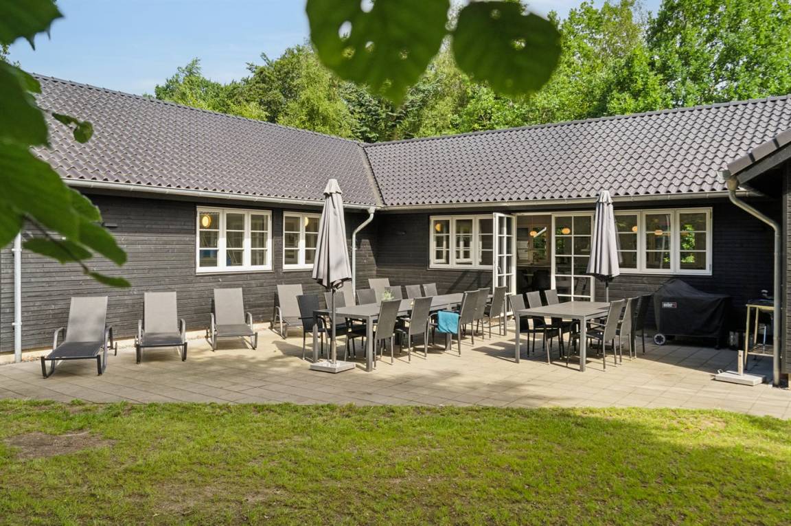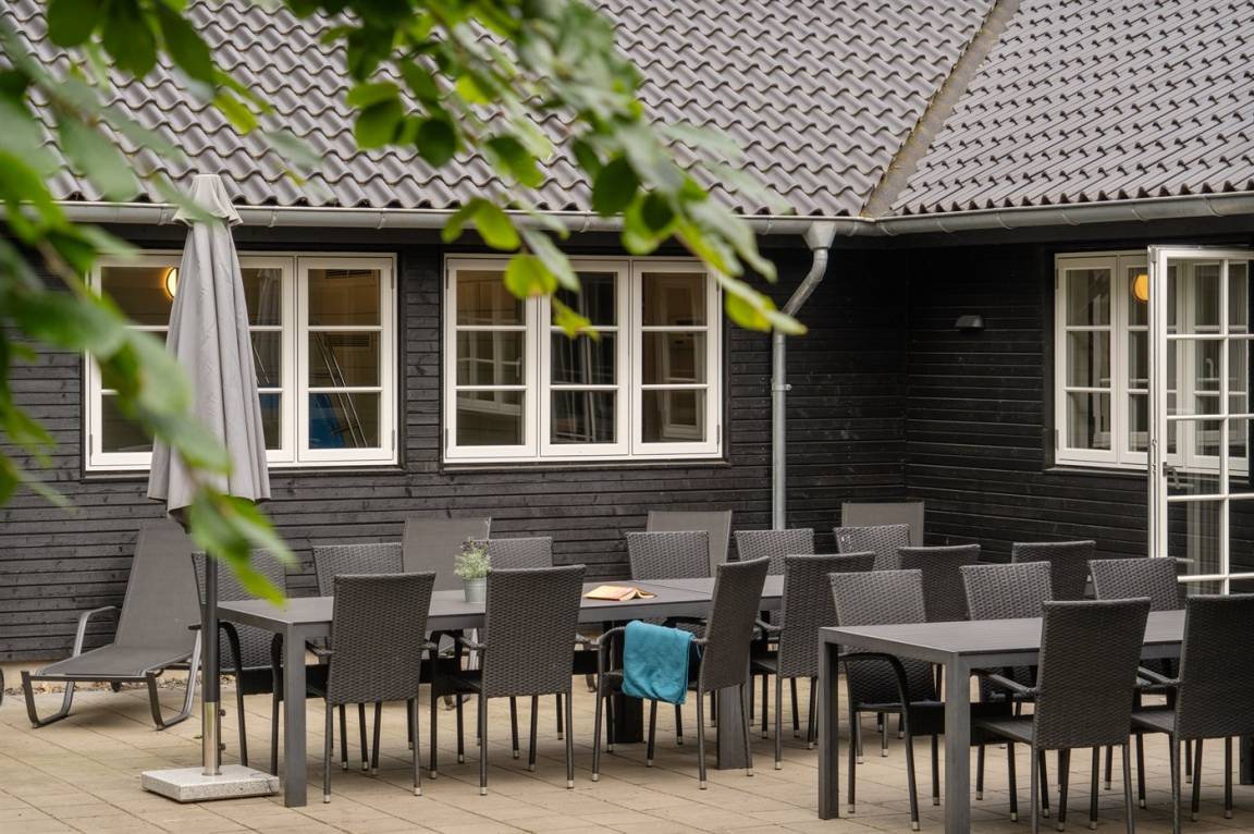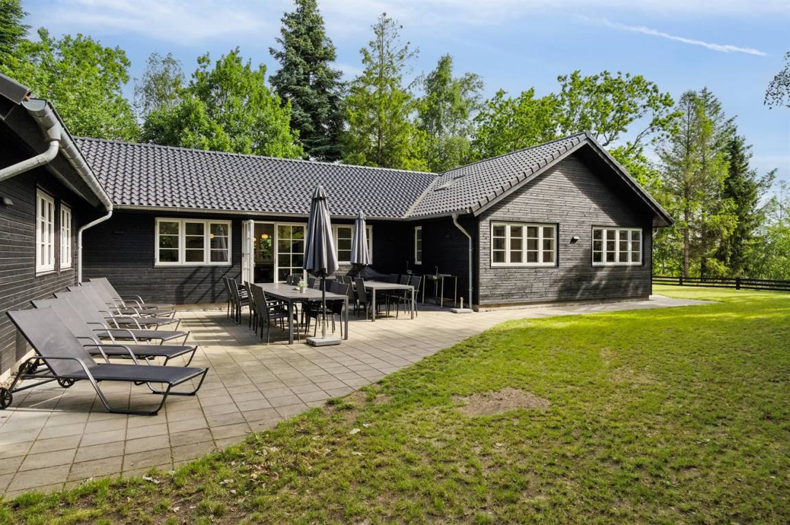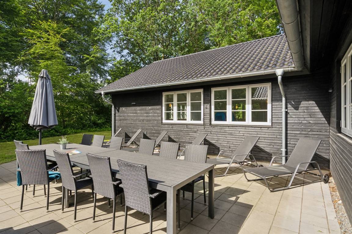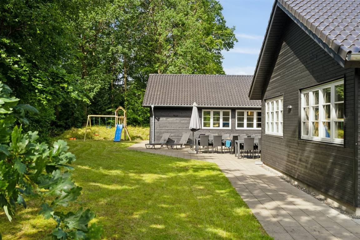 Der schöne Garten ist ein feiner Ort zum Verweilen. Das Haus liegt völlig ungestört, umgeben von hohen Bäumen, was für ein so großes Luxusferienhaus einzigartig ist. Auf dem Grundstück gibt es viel Platz, damit Kinder herumtollen können. Das Ferienhaus verfügt über eine herrliche Terrassenfläche. Von hier aus können die naturschönen und friedlichen Umgebungen in vollen Zügen genossen werden, und es gibt immer die Möglichkeit, ein schönes windgeschütztes Plätzchen zu finden.