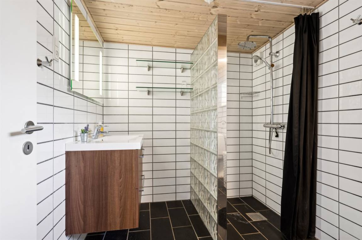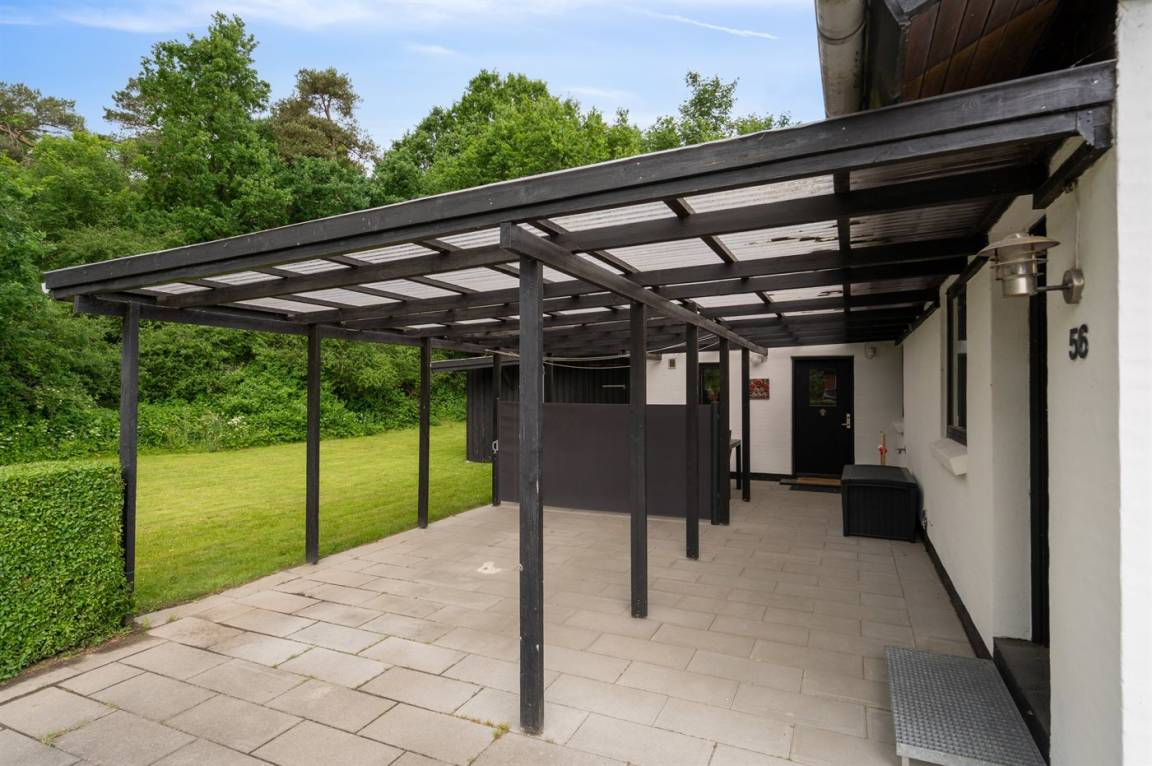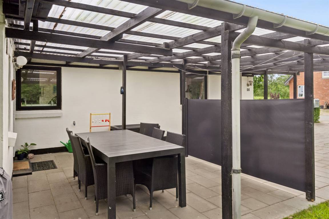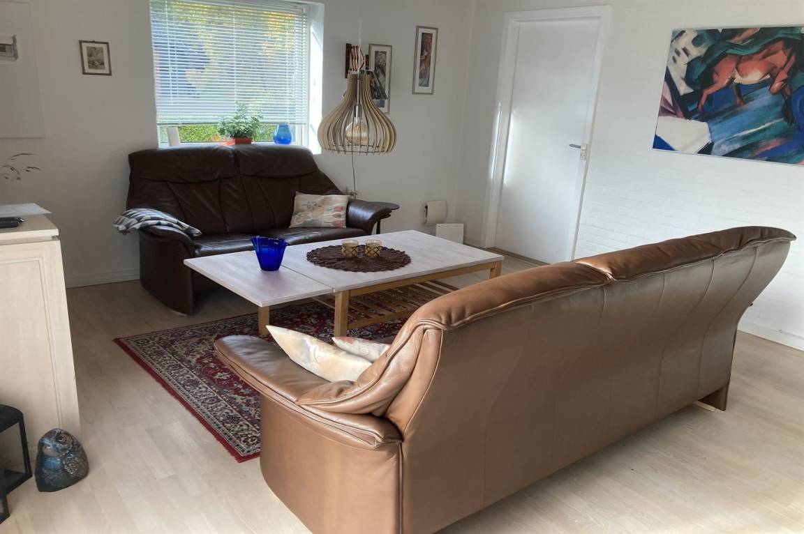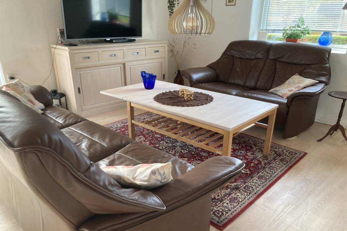 Das Haus verfügt über eine wirklich schöne Terrasse mit Gartenmöbeln und 2 Sonnenliegen, auf der man die wunderschöne Aussicht auf das Wasser in vollen Zügen genießen kann, und auf der anderen Seite des Hauses gibt es eine weitere schöne Terrasse, die überdacht und völlig ungestört ist, da das Grundstück an den Wald grenzt. Hier kann man die Stille in vollen Zügen genießen, und es gibt immer die Möglichkeit, einen geschützten Platz zu finden. Das Feriengebiet lädt zu Spaziergängen in der schönen Natur ein, und ein besonderes Erlebnis ist ein Besuch der Hvidbjerg Düne, die 7 Kilometer vom Haus entfernt liegt.