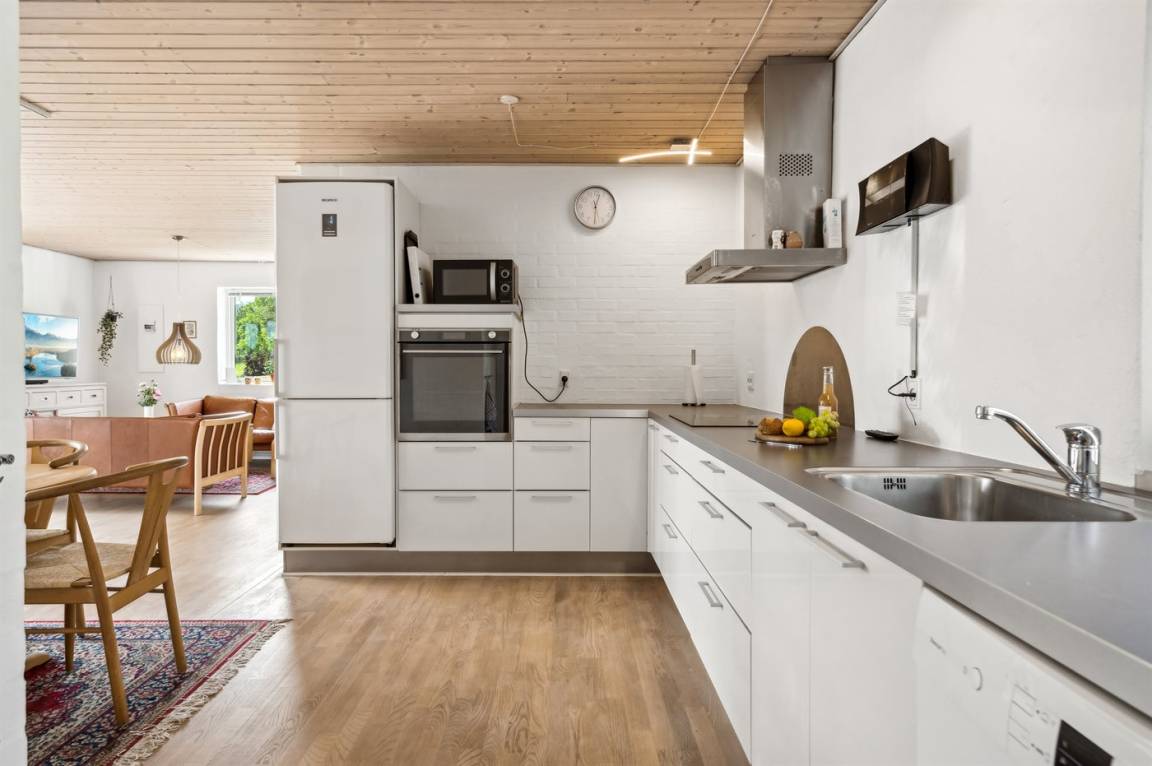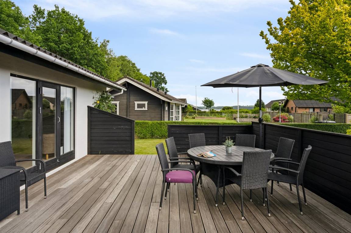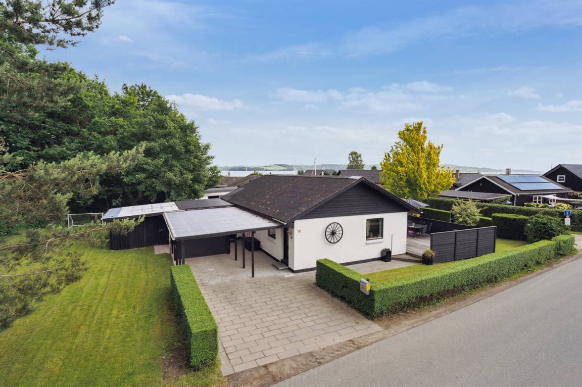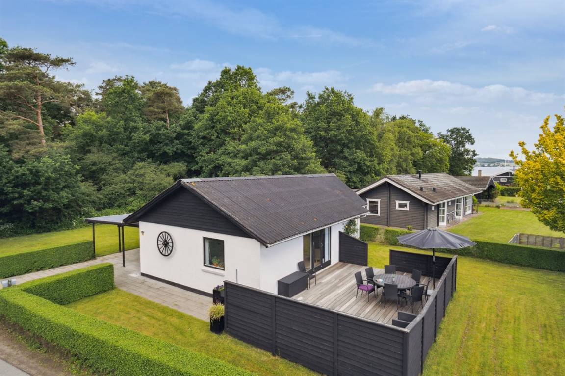 Dieses schöne und gepflegte Haus befindet sich in dem attraktiven und naturschönen Feriengebiet bei Andkær Vig an der wunderschönen Küste des Lillebælt. Vom Haus aus sind es nur etwa 100 Meter bis zum Wasser, und die hervorragende Lage zeigt sich darin, dass das Wasser sowohl von innen als auch vom Grundstück aus zu sehen ist.