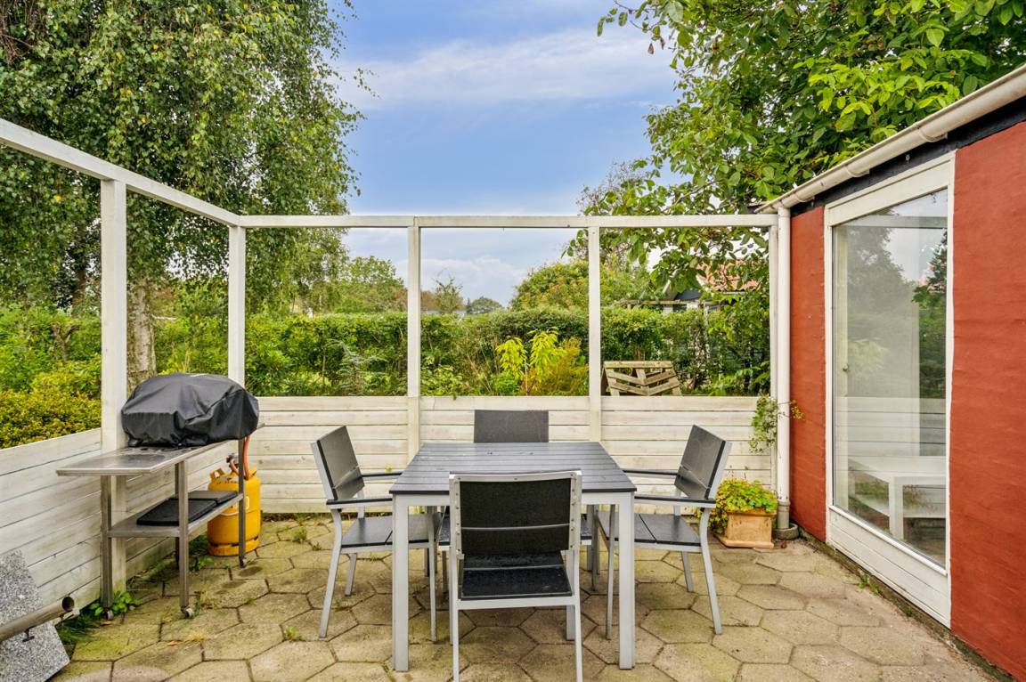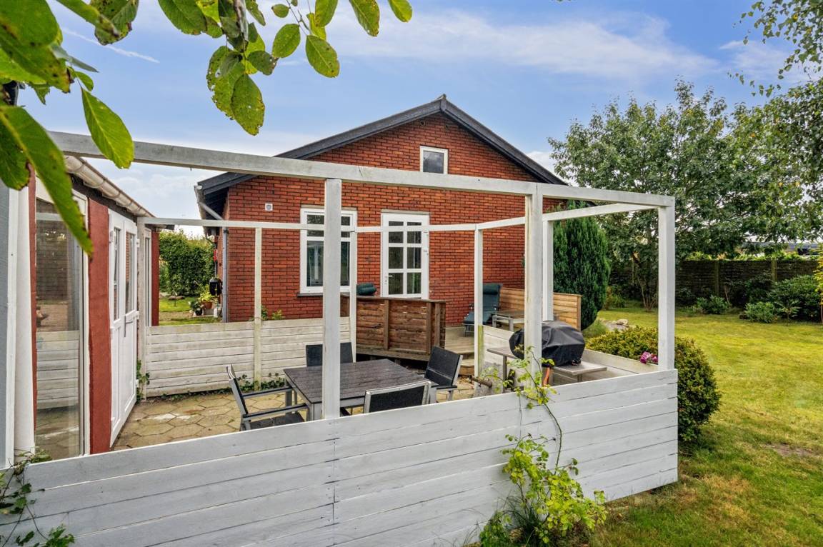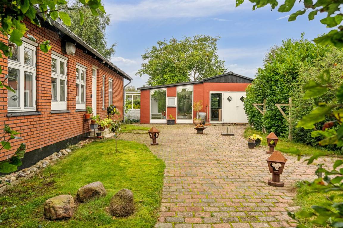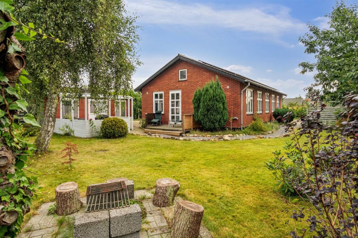 Der schöne Garten ist ein herrlicher Aufenthaltsort, da das Grundstück dank der Bäume und Sträucher völlig uneinsehbar ist. Es gibt viel Platz für Kinder zum Spielen, und im Garten findest du auch eine gemütliche kleine Lagerfeuerstelle sowie einen schönen Wintergarten, der es ermöglicht, die wundervollen Sommerabende zu verlängern. Hier kannst du die Ruhe in vollen Zügen genießen, und es gibt immer eine windgeschützte Ecke auf dem schönen Grundstück.