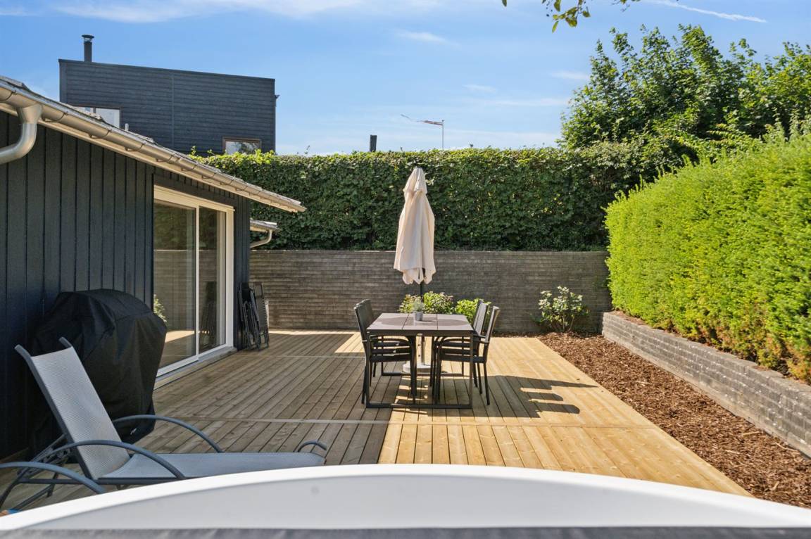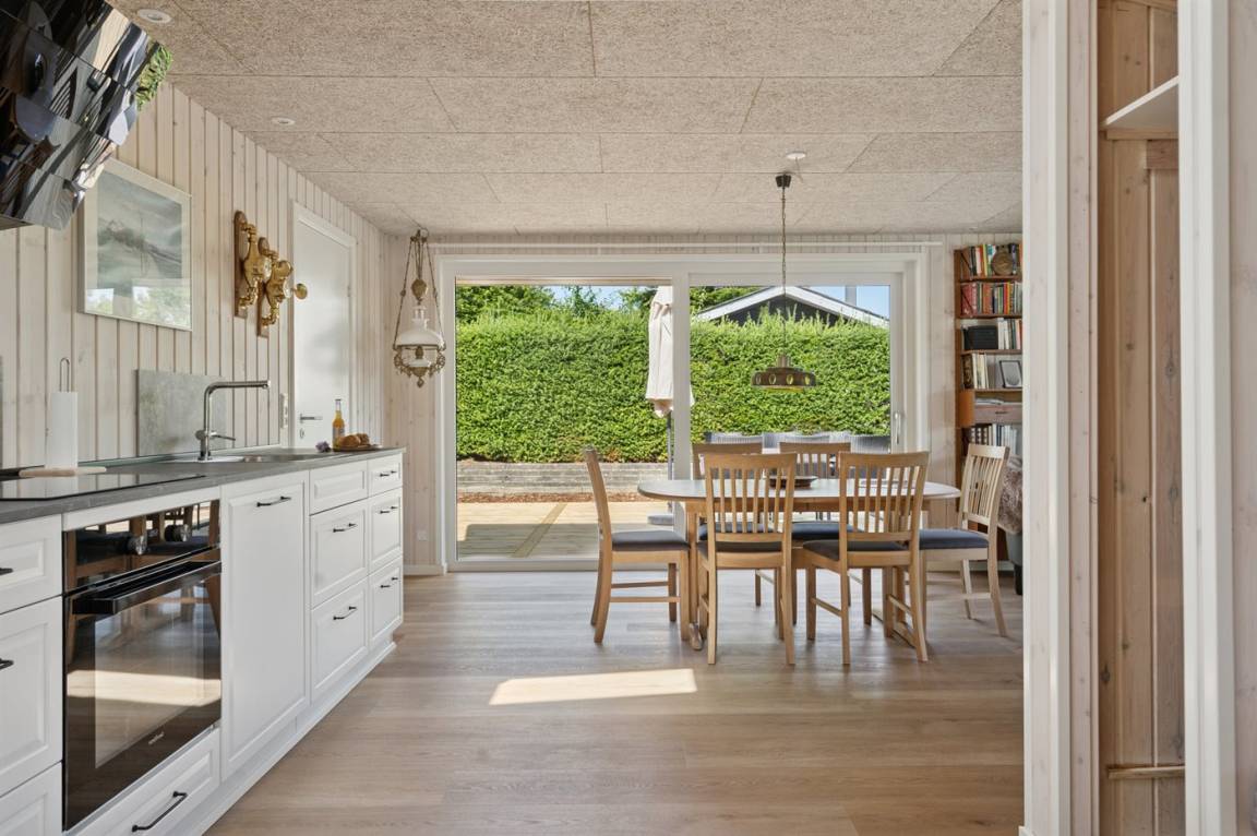 Dieses schöne und komplett renovierte Ferienhaus befindet sich in dem attraktiven und naturnahen Urlaubsgebiet bei Mørkholt, direkt an der herrlichen Küste des Kleinen Belts. Vom Ferienhaus sind es nur ca. 250 Meter bis zum Wasser. Von hier aus kannst du einen herrlichen Spaziergang entlang des Wassers machen, bei dem du auch an der Hvidbjerg Düne vorbeikommst, wenn du in Richtung Høll gehst, daß an Mørkholt grenzt. Dort findest du den "Fladstrand", den besten und kinderfreundlichsten Sandstrand der Gegend – ein idealer Ort, an dem deine Familie viele Stunden am Wasser verbringen und die herrliche Umgebung genießen kann.