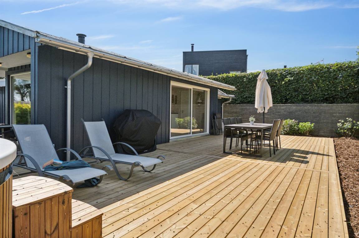 Das Ferienhaus verfügt über eine schöne Terrasse, die teilweise überdacht ist und von der aus du sogar einen Blick auf den Fjord hast – genau wie auch vom Inneren des Hauses. Außerdem gibt es hier einer herrlichen Hot Tub, in dem sich deine Familie entspannen und die Ruhe in vollen Zügen genießen kann. Die Urlaubsgegend lädt zu Spaziergängen in der schönen Natur ein, und ein besonderes Erlebnis ist ein Besuch der Hvidbjerg Düne, die nur ca. 600 Meter vom Ferienhaus entfernt liegt. In der Umgebung gibt es auch eine Eisdiele und ein kleines Café.