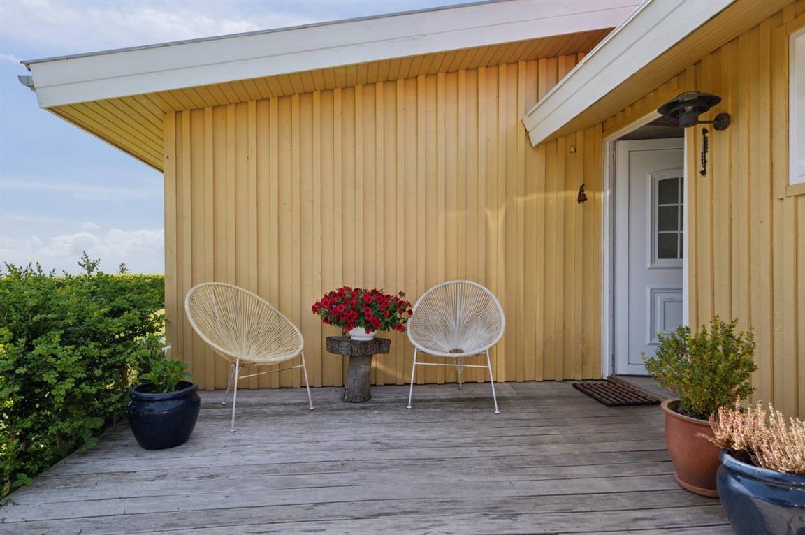 DraußenDie Ferienunterkunft liegt auf einem 800 m² großen Gartengrundstück. Die Entfernung zum Meer beträgt 200 m. Es steht ein offenes Terrassenareal zur Verfügung. Außerdem gibt es überdachte Terrasse. Es steht ein Grill zur Verfügung. Es steht ein Carport zur Verfügung. Parkplatz auf dem Grundstück.