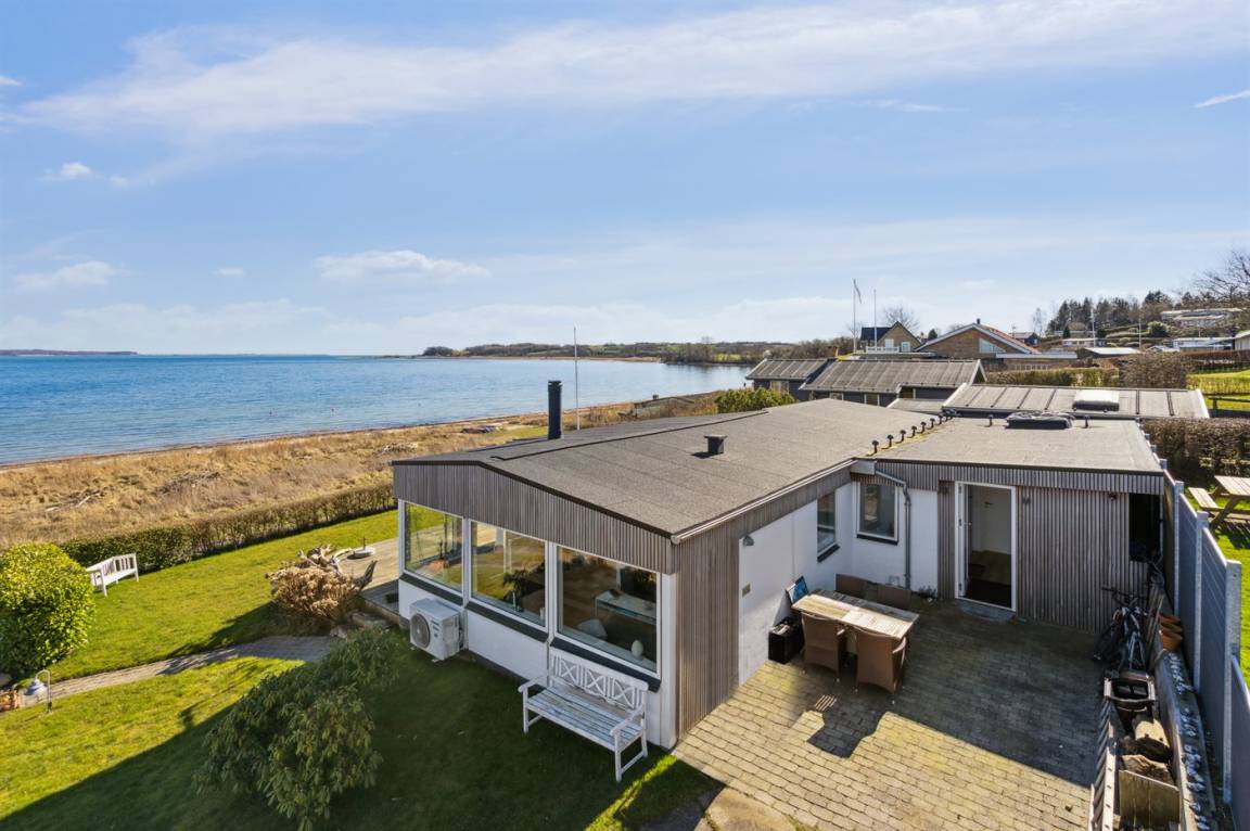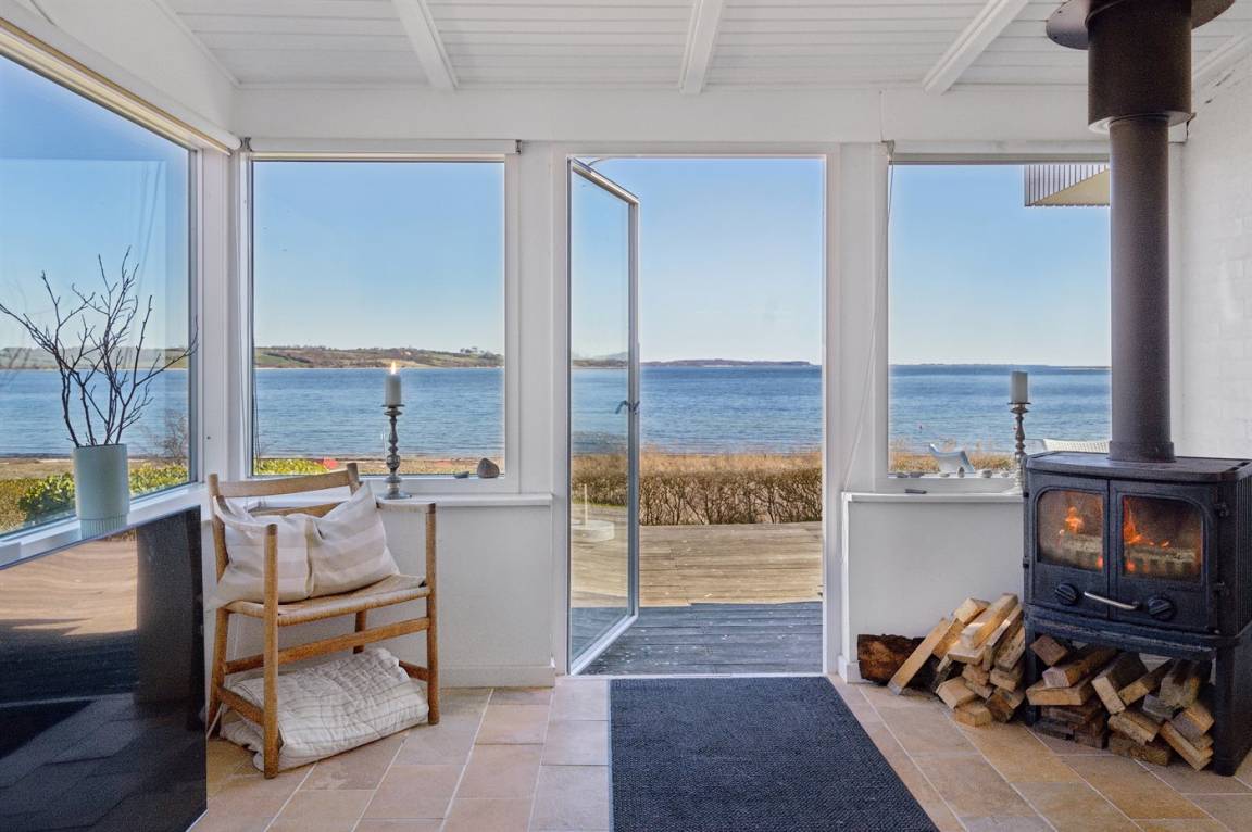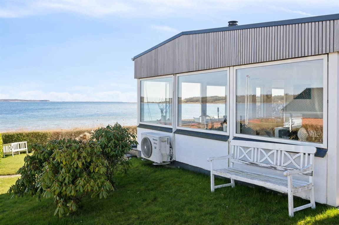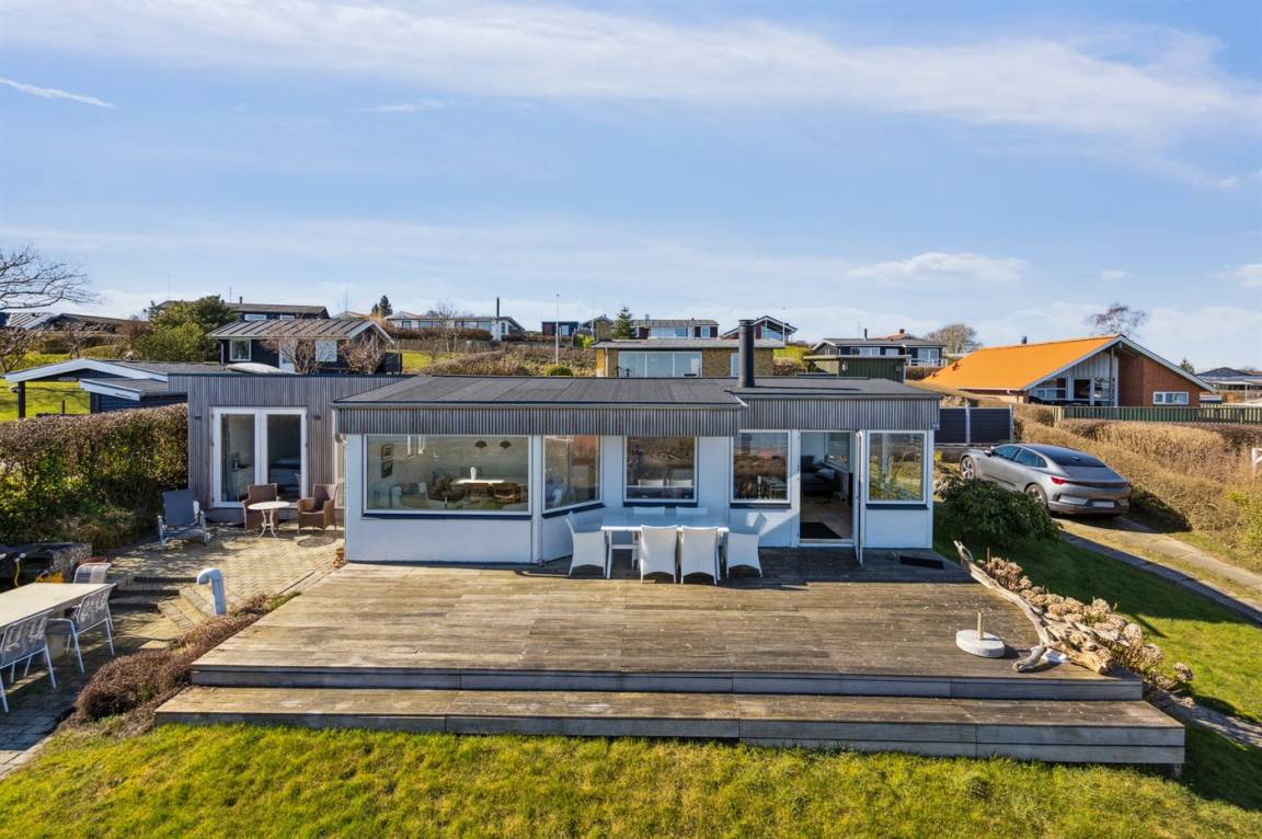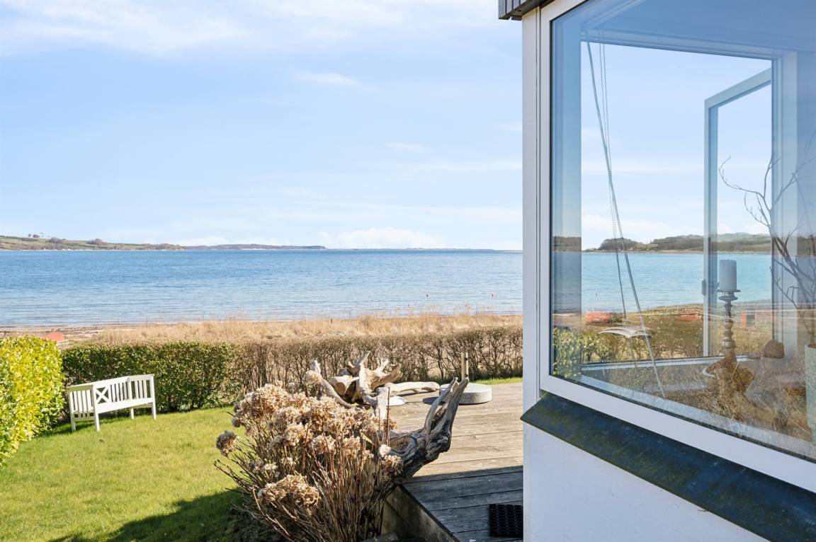 Mit Panoramablick auf das Wasser und nur 30 m von einem tollen Badestrand entfernt findest du dieses gemütliche Ferienhaus.
