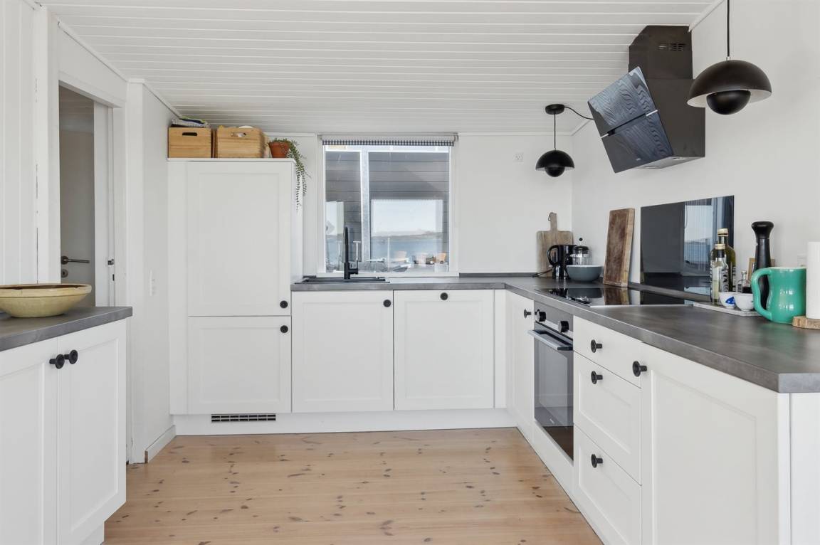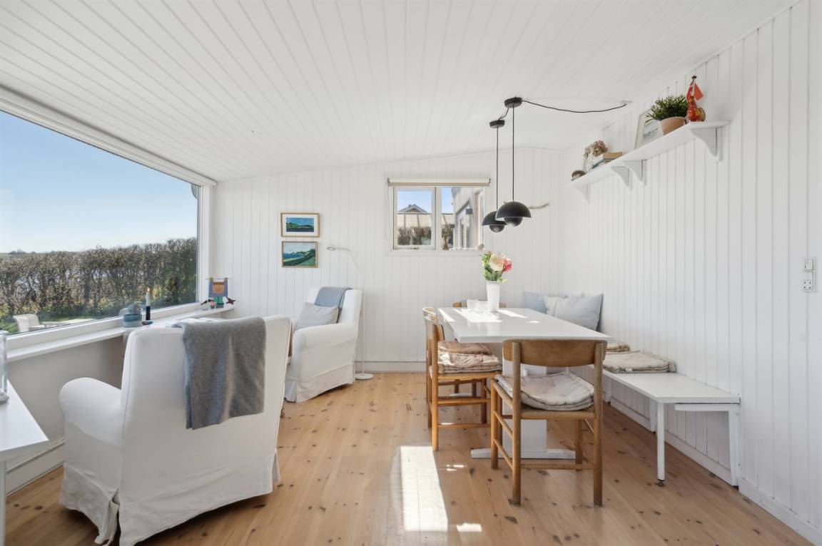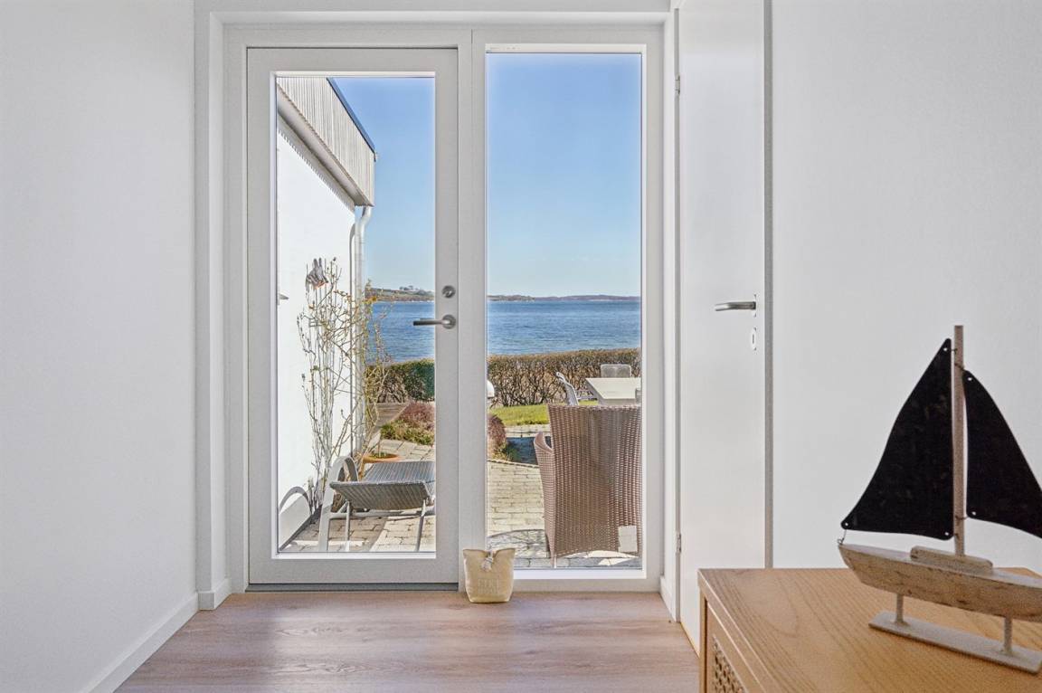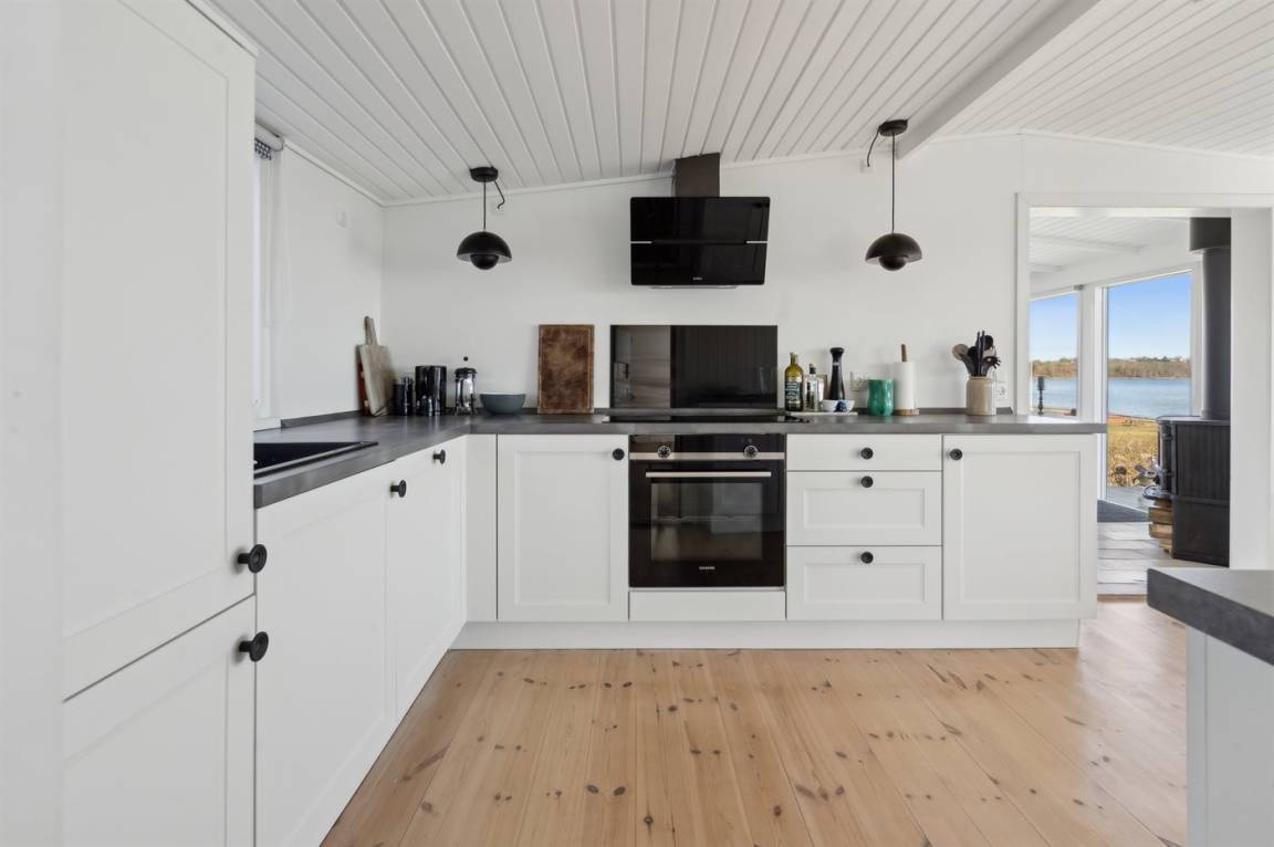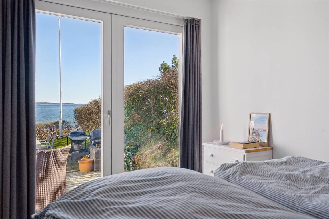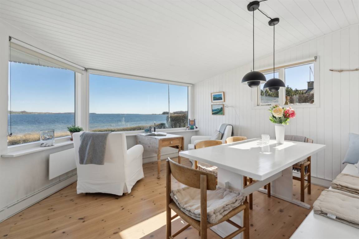 Mit Panoramablick auf das Wasser und nur 30 m von einem tollen Badestrand entfernt findest du dieses gemütliche Ferienhaus.