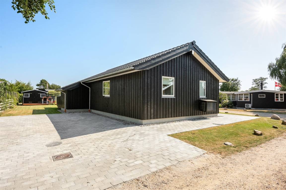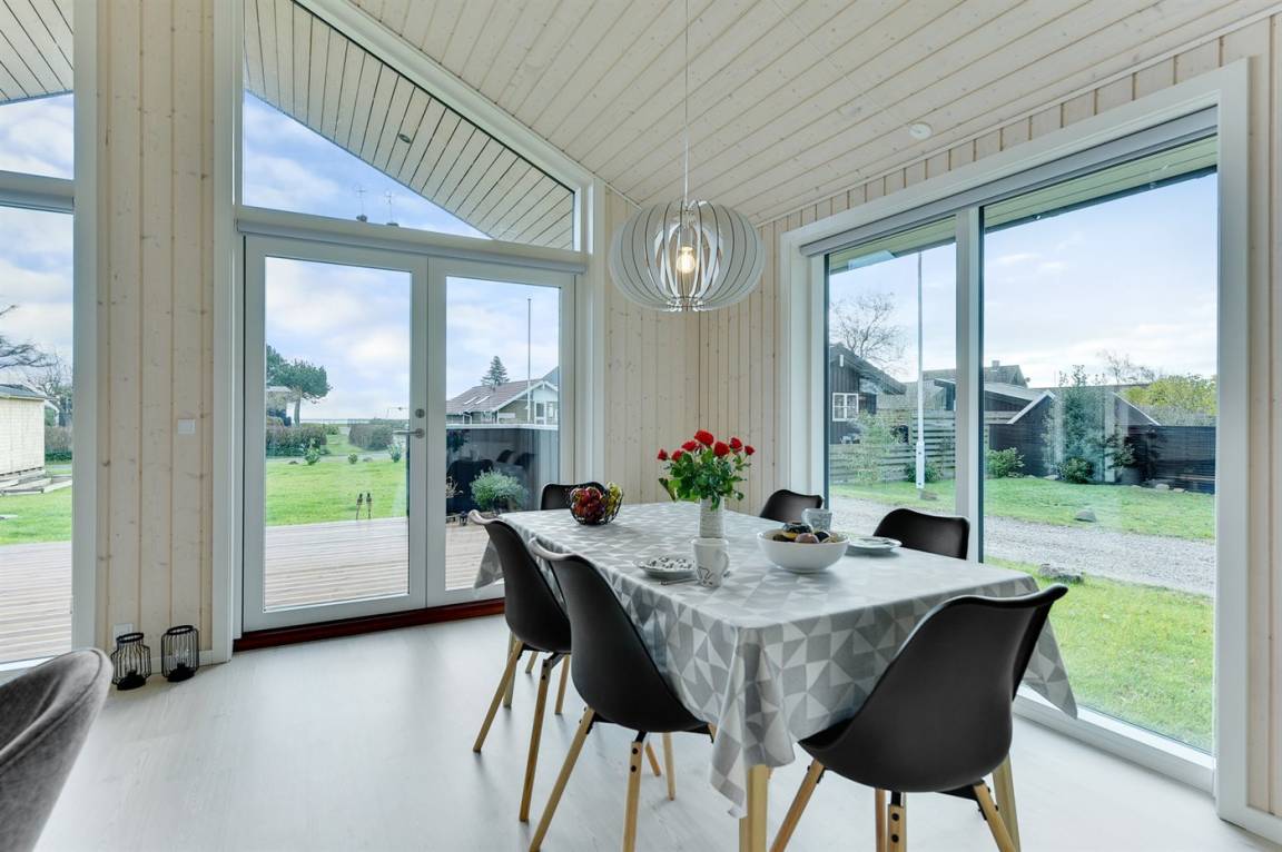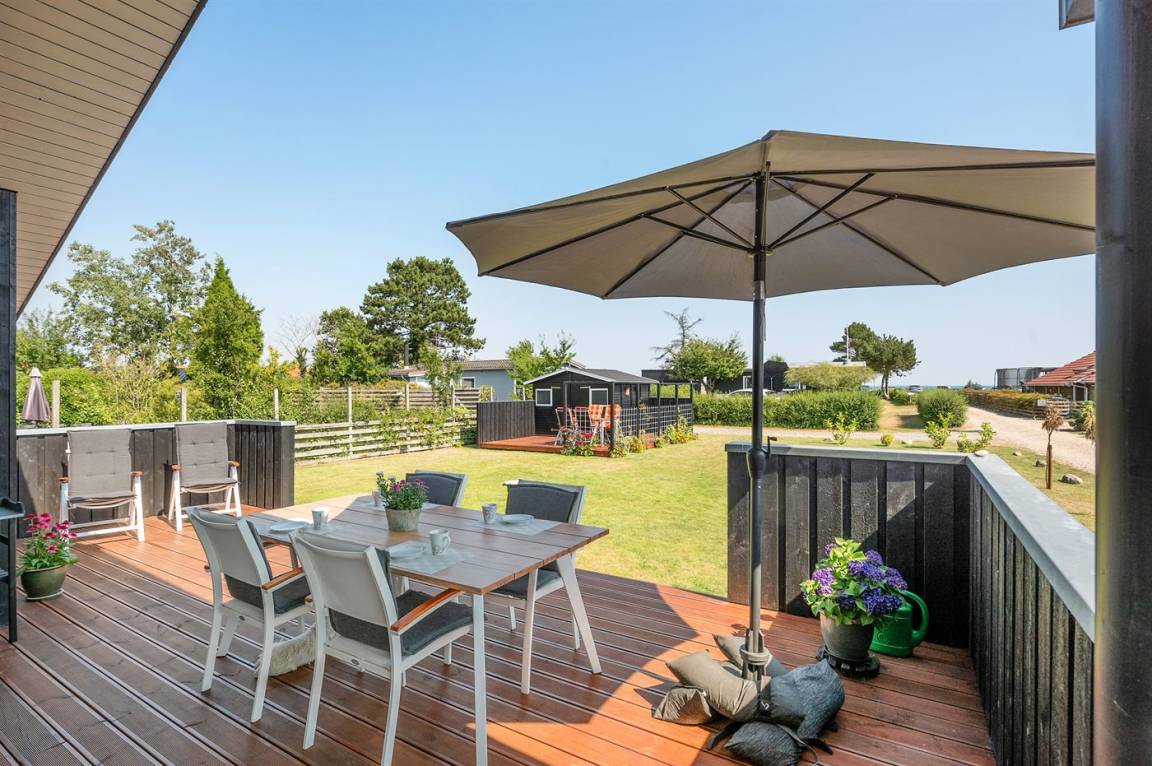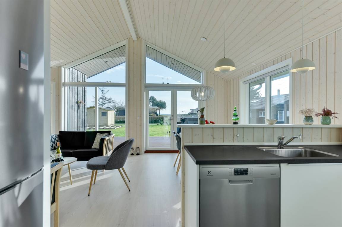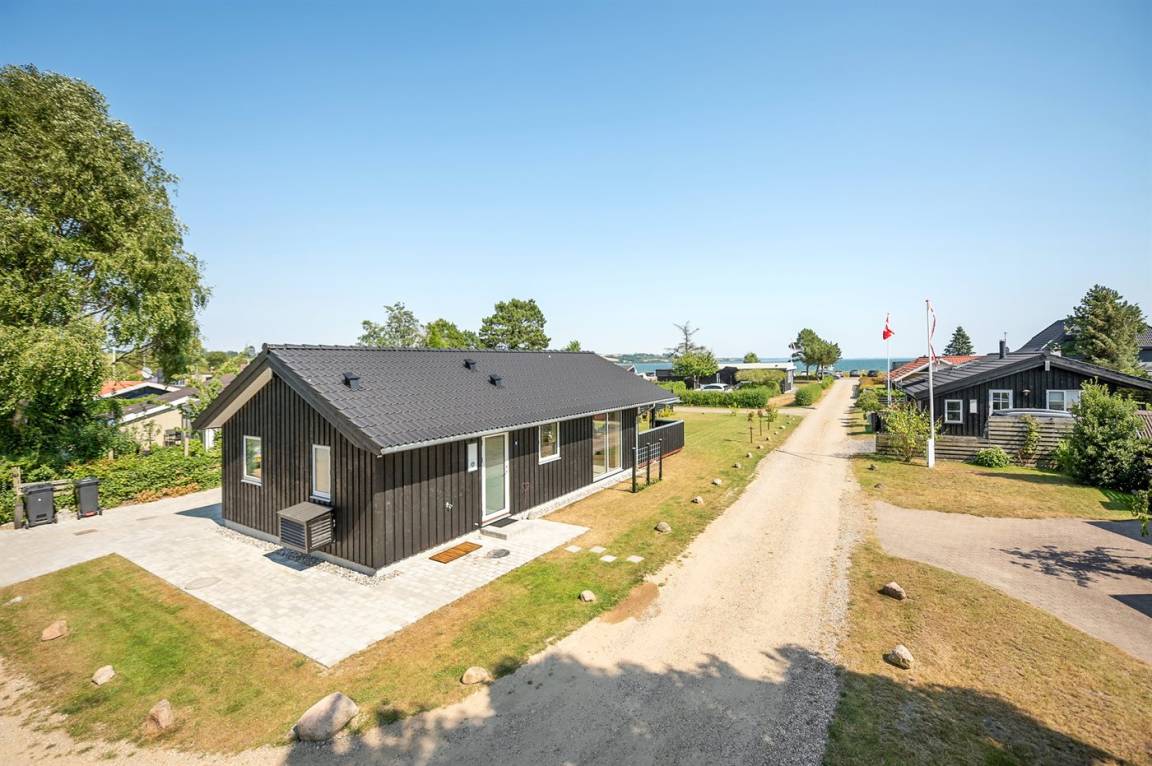 Tolles neues Ferienhaus von 2019 in ruhiger, wassernaher Lage am kinderfreundlichen Badestrand, inmitten malerischer Natur. Das Haus ist hell und freundlich und sowohl vom Haus als auch vom Grundstück aus können Sie das Meer sehen.