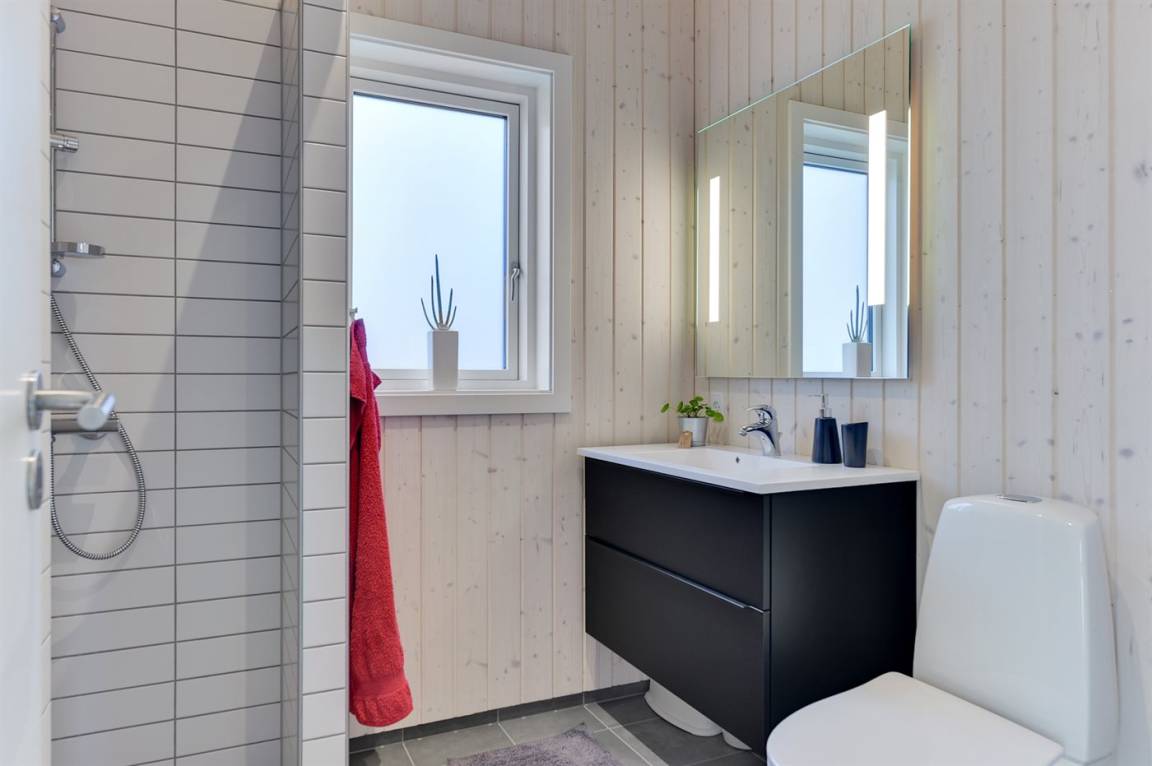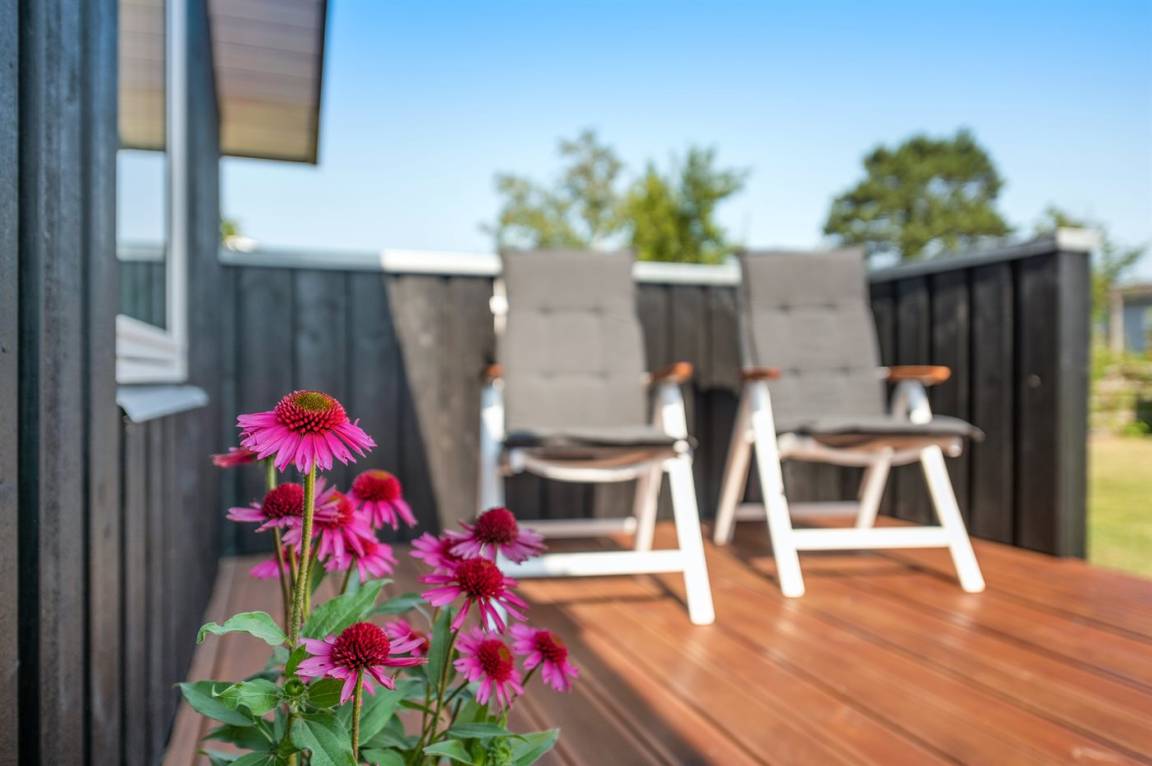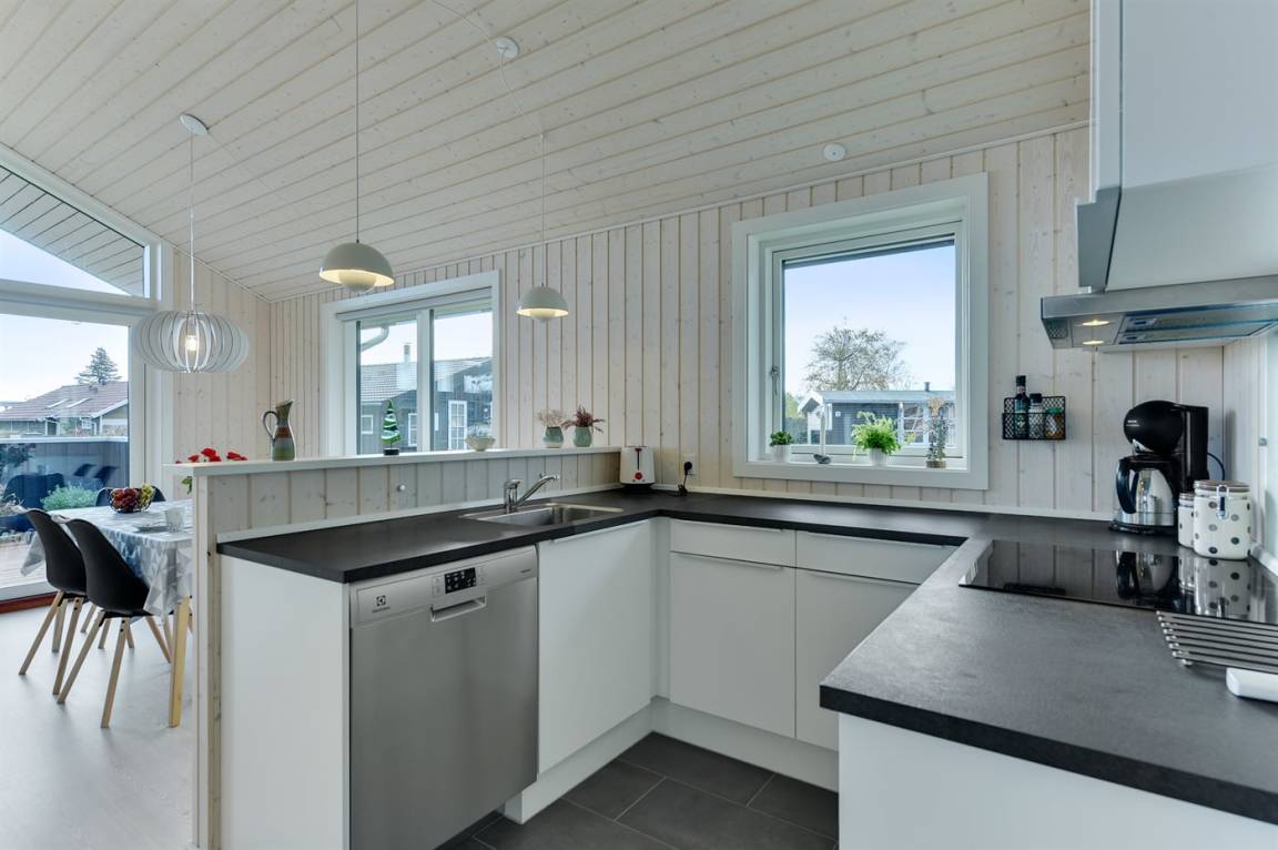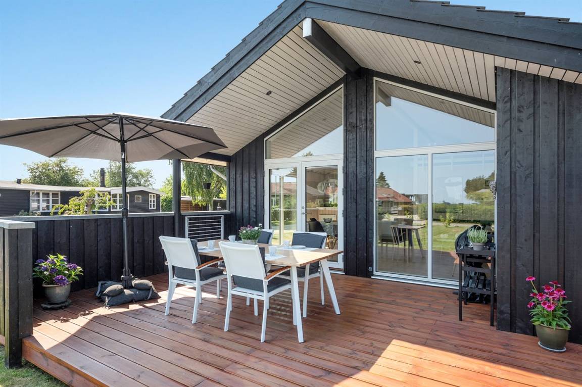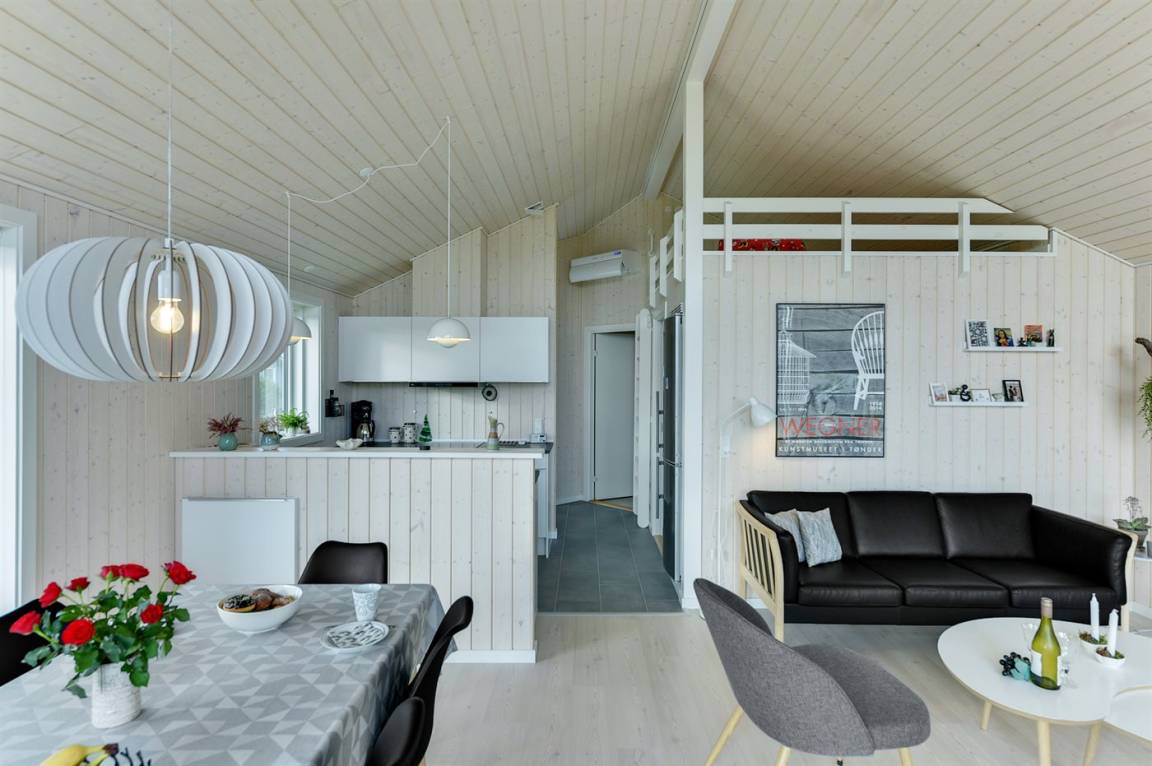 Tolles neues Ferienhaus von 2019 in ruhiger, wassernaher Lage am kinderfreundlichen Badestrand, inmitten malerischer Natur. Das Haus ist hell und freundlich und sowohl vom Haus als auch vom Grundstück aus können Sie das Meer sehen.
