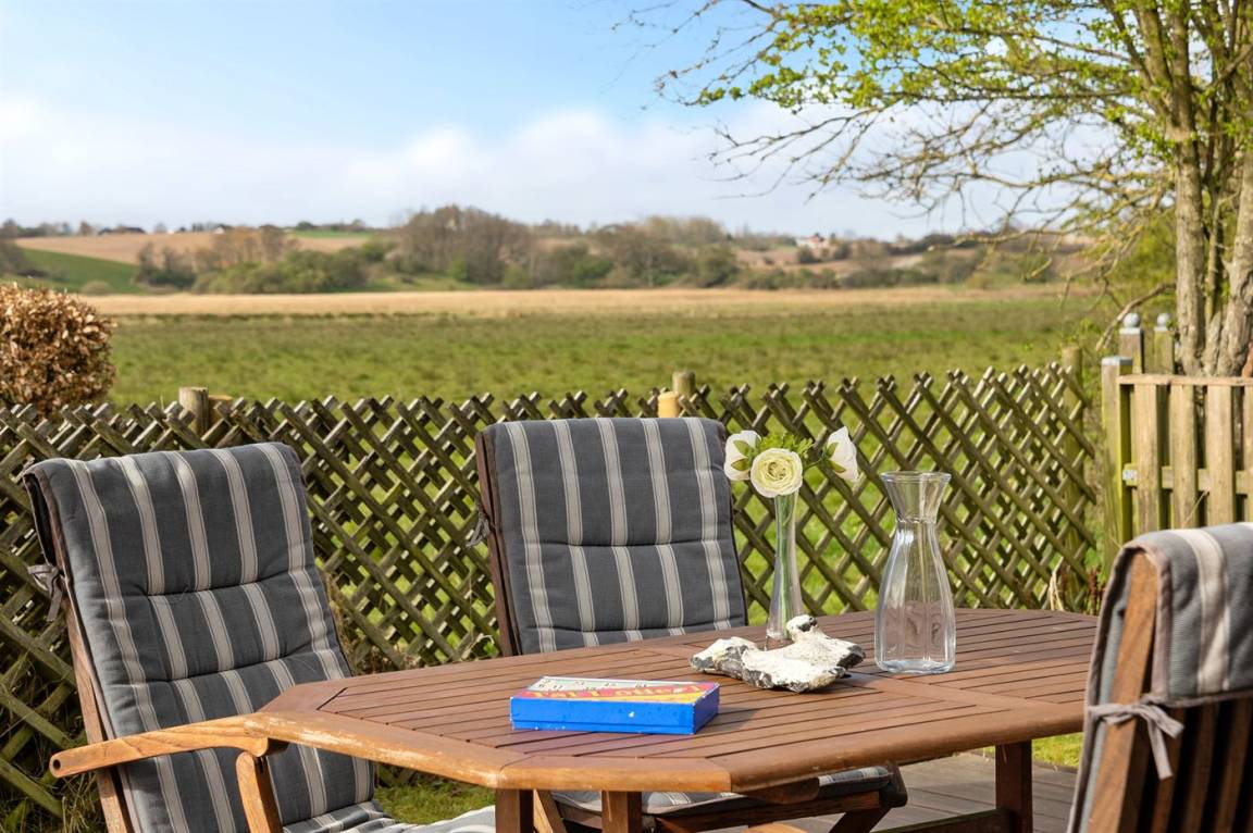 Diese geräumige und komfortabel eingerichtete Ferienhaus liegt in ruhiger Umgebung - in der Ferienhaussiedlung Vemmingbund. Das 2009/2010 gebaute Ferienhaus ist mit allergikerfreundlichen Materialien eingerichtet. Die Böden in der Küche und im Wohnzimmer sind mit Eichenparkett ausgelegt und Die Kaminecke ist aus handgefertigten Flensburger Ziegeln gemauert. An der nach Süden gewandten Giebelseite befinden sich mehrere große Fenster, die dem Ferienhaus ein helles und einladendes Ambiente verleihen. Das Ferienhaus liegt ungestört, von Hecken umgeben und mit Aussicht auf Felder und Wiesen. Nur wenige 100 m vom Haus entfernt gibt es einen Kiosk mit Minigolfanlage. Übrigens: 2 Schlafplätze im offenen Obergeschoss.