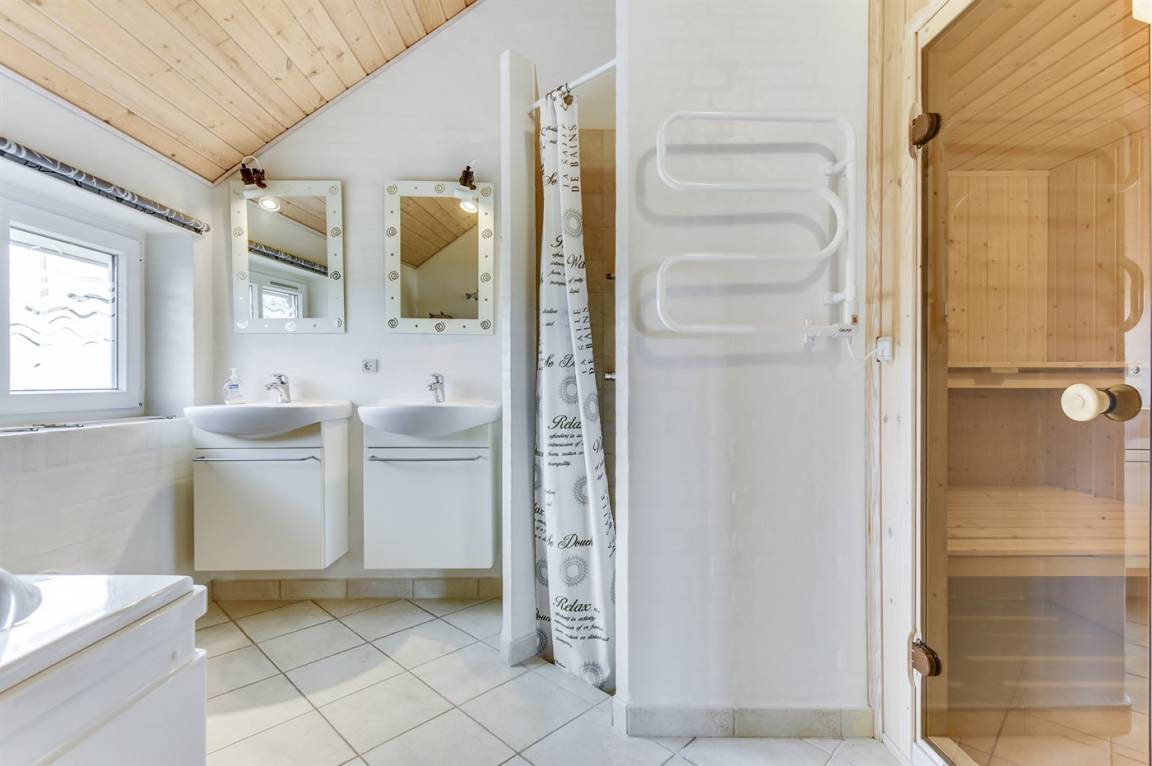 Es gibt 2 Badezimmer mit Dusche. In einem befindet sich auch die Sauna. Zusätzlich gibt es einen Whirlpool für 2 Personen zum Entspannen. Fußbodenheizung in beiden Badezimmern, Küche und Eingang.