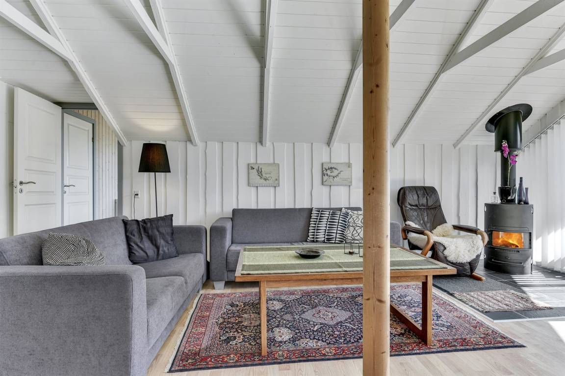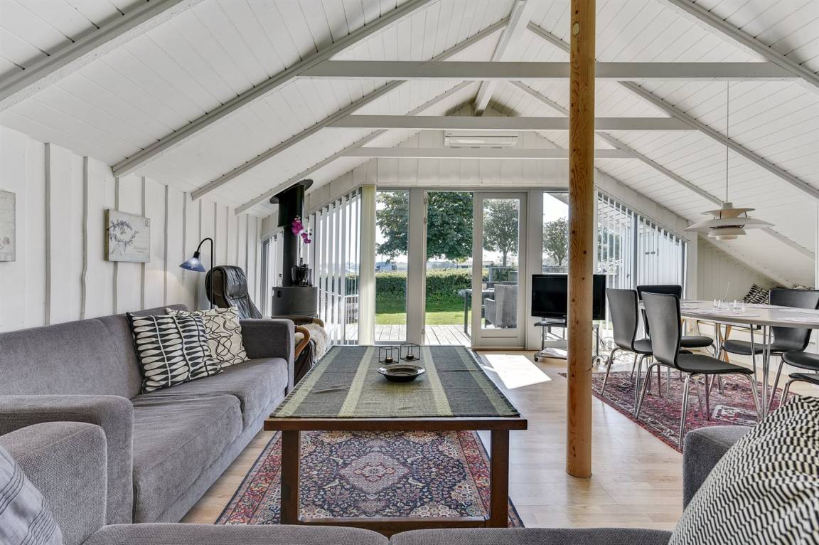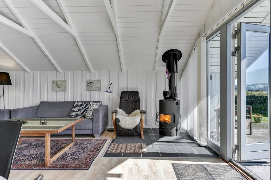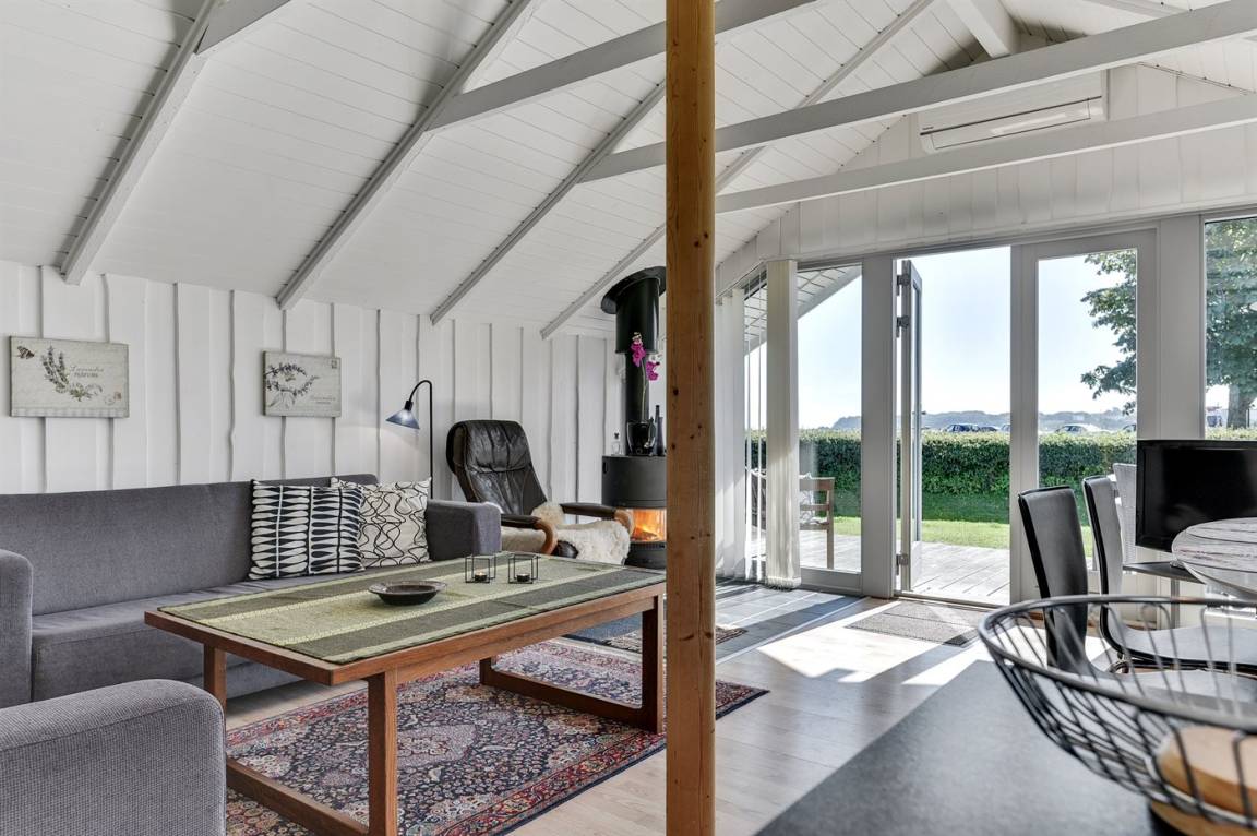 Dieses helle und geräumige Ferienhaus liegt nur 50 m von einem schönen Badestrand entfernt. Eine große Fensterfront in Richtung Süden sorgt für einen guten Lichteinfall sowie die Möglichkeit, die Aussicht auf das Meer zu genießen. 2 Schlafplätze befinden sich im Alkoven im Wohnzimmer.
