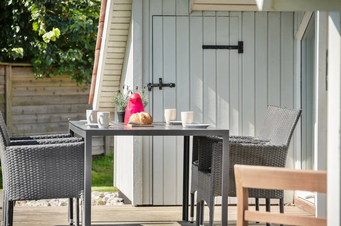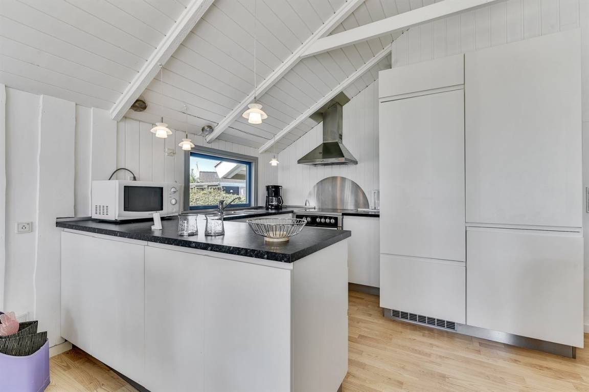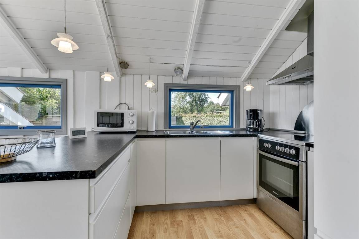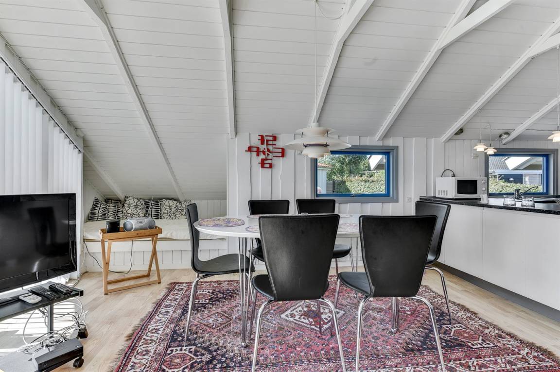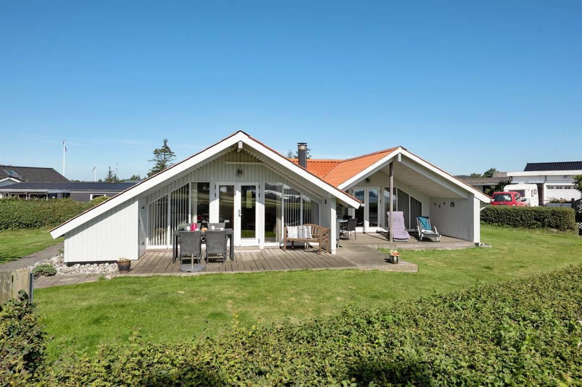 Dieses helle und geräumige Ferienhaus liegt nur 50 m von einem schönen Badestrand entfernt. Eine große Fensterfront in Richtung Süden sorgt für einen guten Lichteinfall sowie die Möglichkeit, die Aussicht auf das Meer zu genießen. 2 Schlafplätze befinden sich im Alkoven im Wohnzimmer.