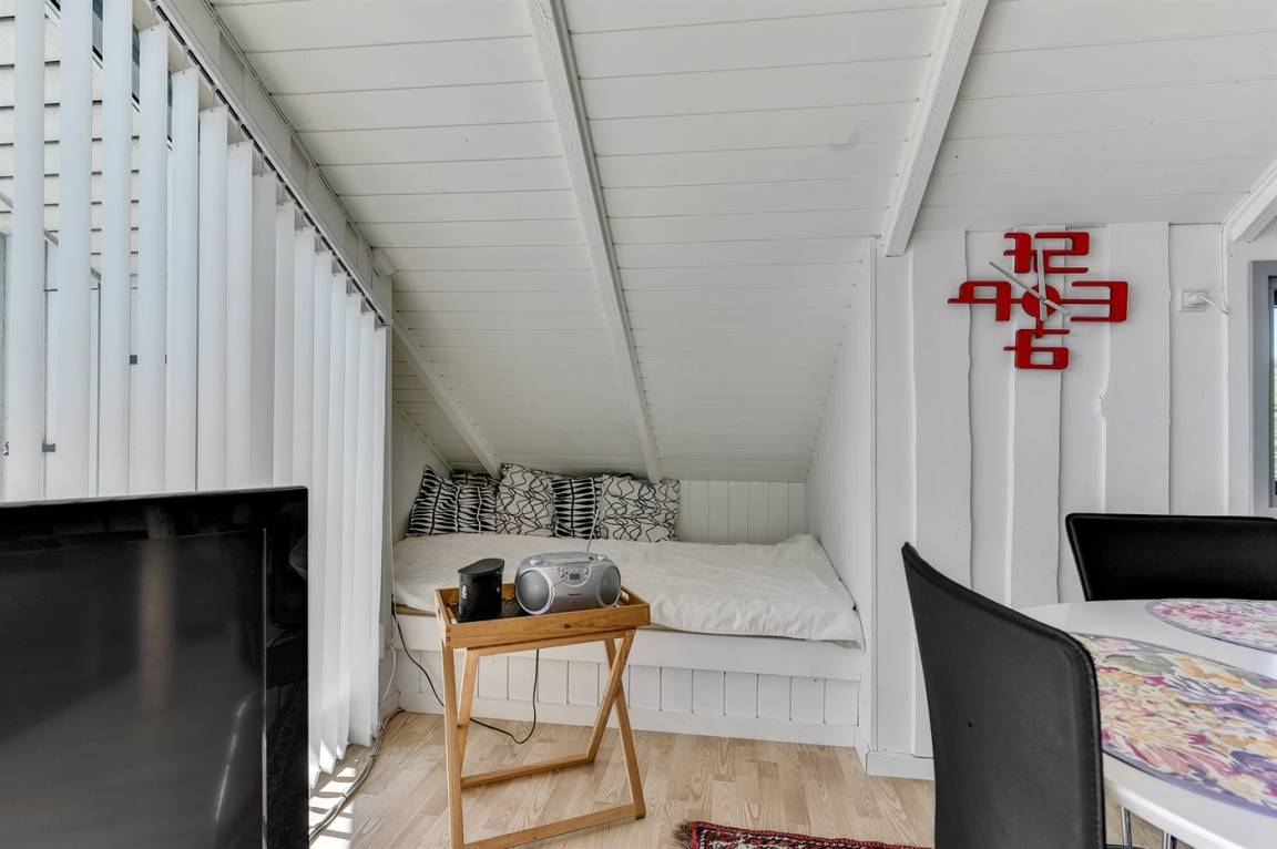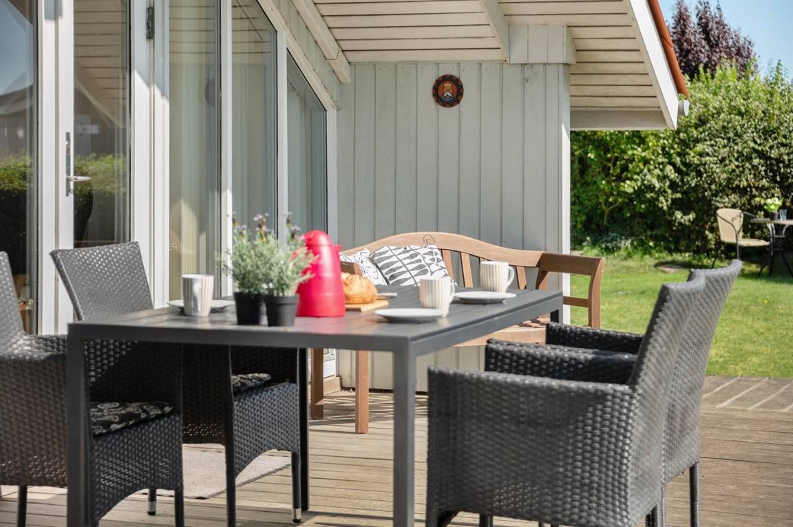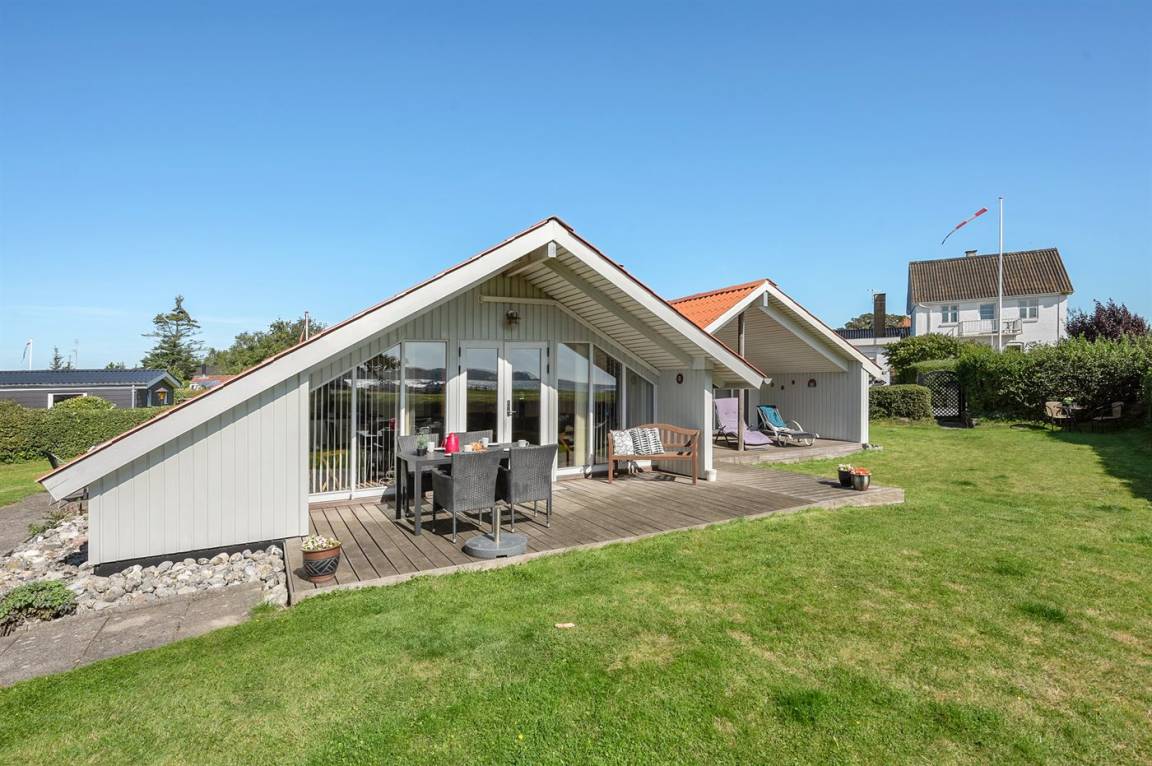 DraußenDie Ferienunterkunft liegt auf einem 697 m² großen Gartengrundstück. Die Entfernung zum Fjord beträgt 50 m. Die nächste Einkaufsmöglichkeit liegt 2000 m entfernt. Es steht ein 5 m² Terrassenareal zur Verfügung. Außerdem gibt es 20 m² überdachte Terrasse. Sandkasten. Es steht ein Grill zur Verfügung.