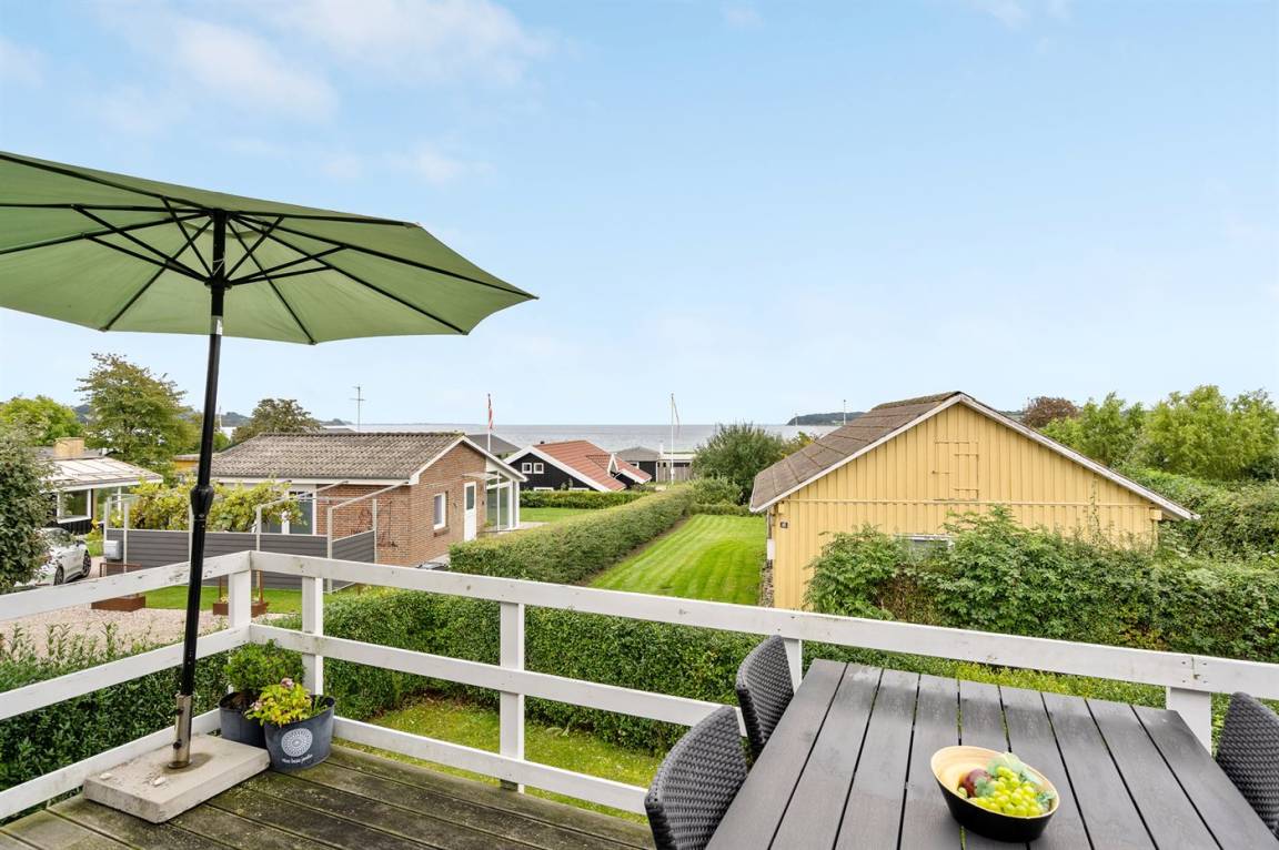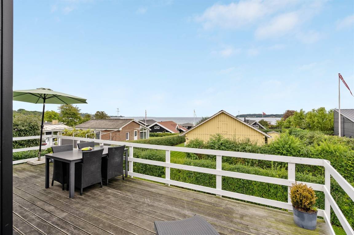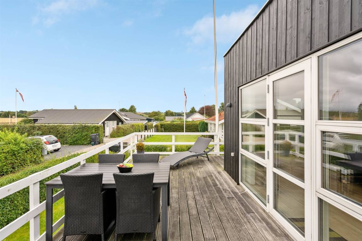 Schönes, hell eingerichtetes Ferienhaus mit großer Terrasse, mit Platz für Gemütlichkeit und mit Blick auf dem Meer.