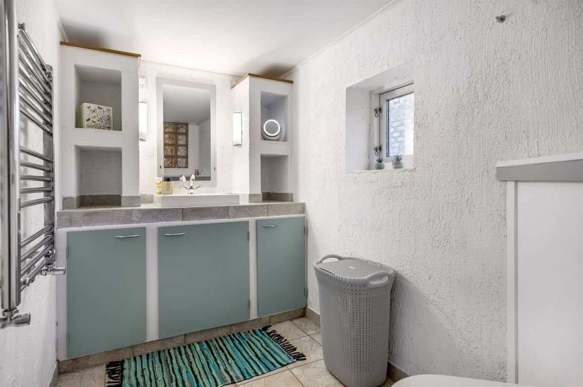 WC und BadEs gibt 1 Badezimmer mit Duschnische und 2 Toiletten, davon 1 Gästetoilette. Fußbodenheizung in 1 Badezimmer. Fußbodenheizung in der Gästetoilette.