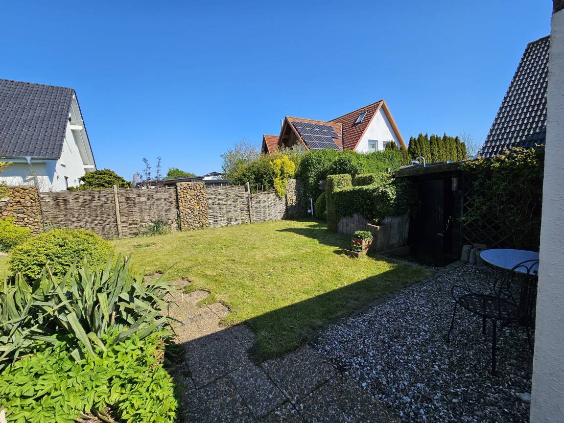 Der gepflegte Garten mit Rasenflächen bietet viel Platz zum, Entspannen und Sonnenbaden. Für Grillliebhaber steht zudem ein Holzkohlegrill zur Verfügung, auf dem Sie köstliche Mahlzeiten zubereiten und in geselliger Runde genießen können.