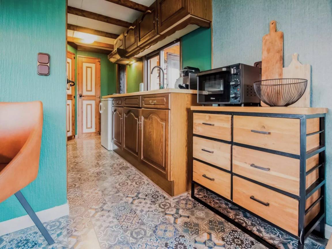 „Das Mobilheim an sich war sehr gemütlich und stilvoll eingerichtet und auch die überdachte Terrasse hat uns sehr gut gefallen. Die Dame an der Rezeption konnte Deutsch und war sehr bemüht uns zu helfen und wirklich höflich. 1 Punkt Abzug gebe ich allerdings für das nicht vorhandene Waschbecken im Bad, den sehr kleinen Ofen (für 7 Personen lässt sich darin eigentlich nichts machen, weil er selbst für Tiefkühlpizza zu klein ist) und die sehr knapp bemessenen Schlafzimmer. Koffer ließen sich leider kaum unterbringen. An der Stelle wäre ein Schlafzimmer weniger vielleicht besser gewesen.“