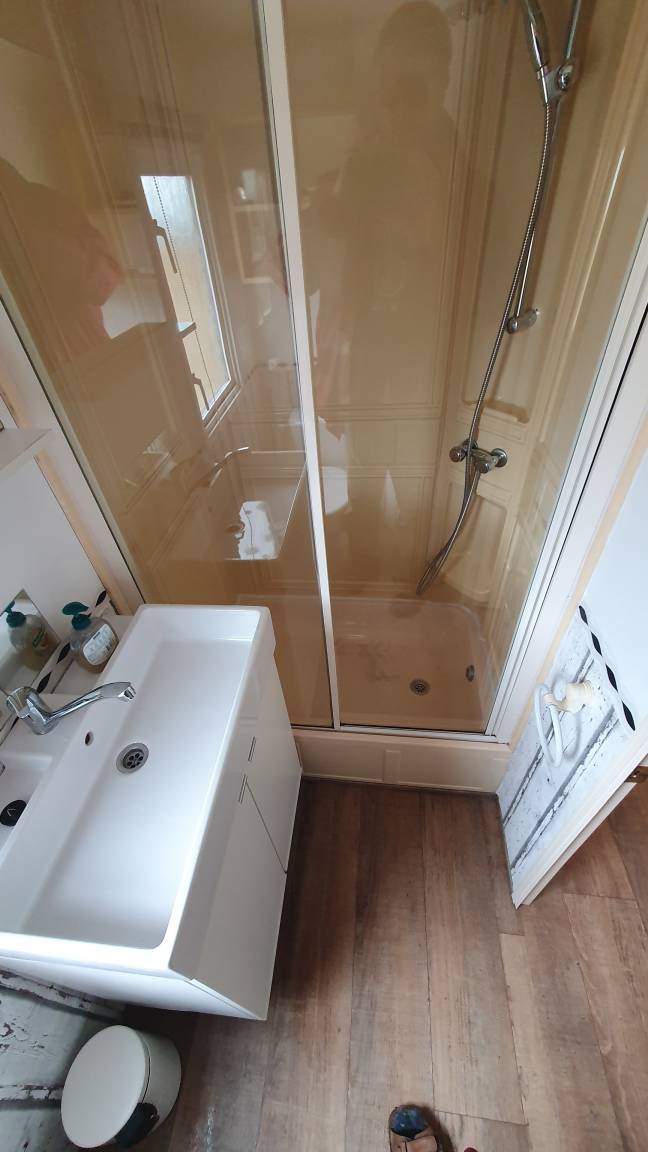 Es ist voll ausgestattet mit einem schönen Wohn/Essbereich, eine Küche mit Gaskochfeld, Gasherd, Kühlschrank, Kaffeemaschine, Wasserkocher, Geschirr, Töpfe, und alles was dazu gehört.