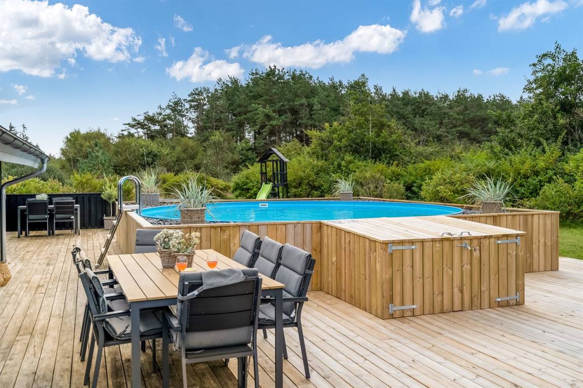 Zum Haus gehört ein privater Außenpool, der vom 15. Mai bis zum 1. Oktober genutzt werden kann. Der Pool wird ausschließlich mit Solarenergie beheizt.