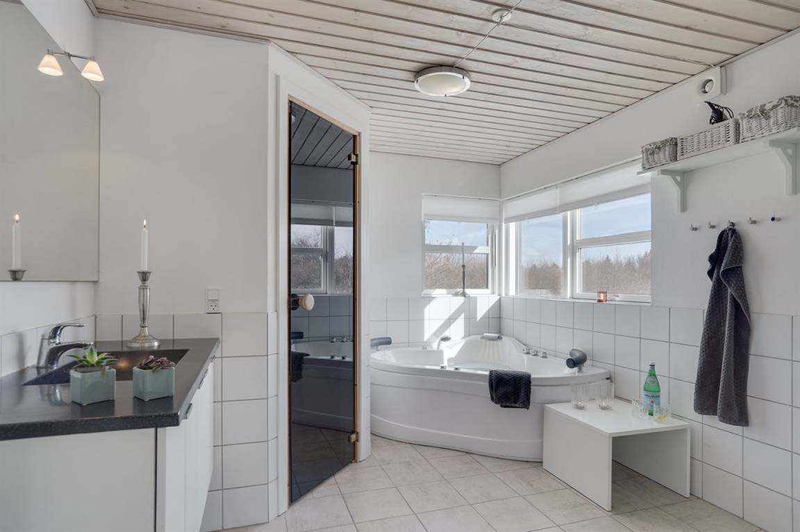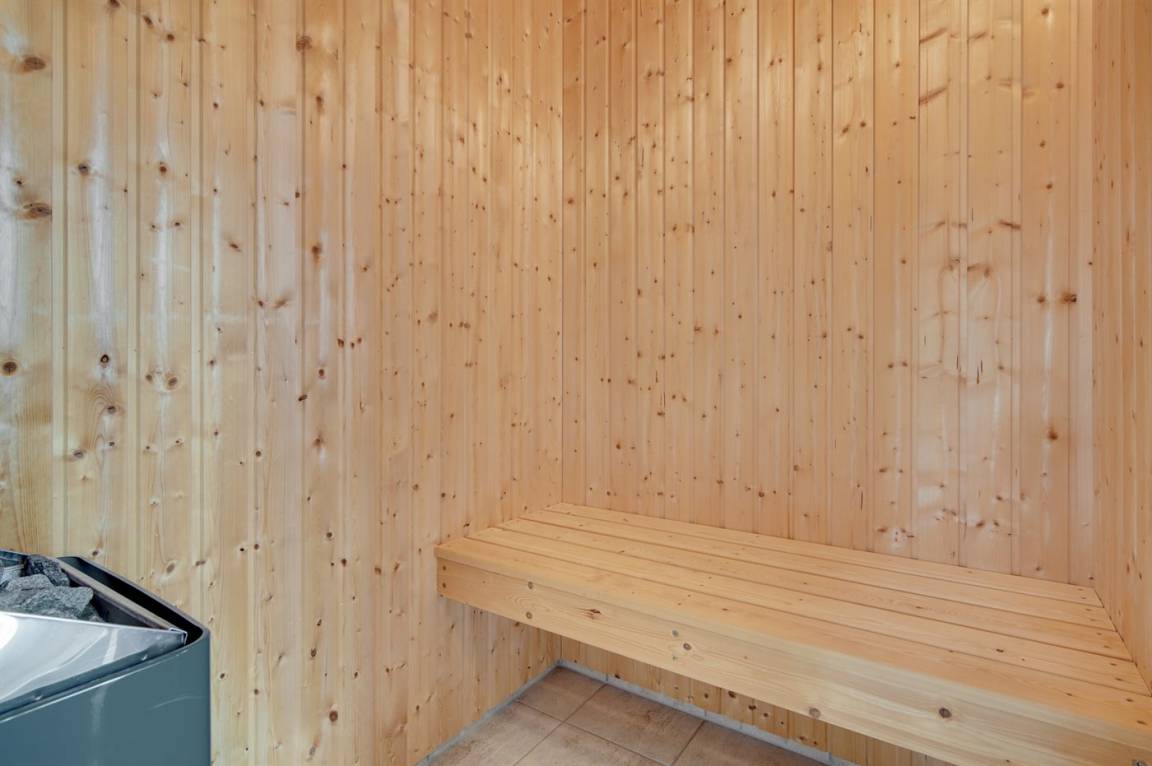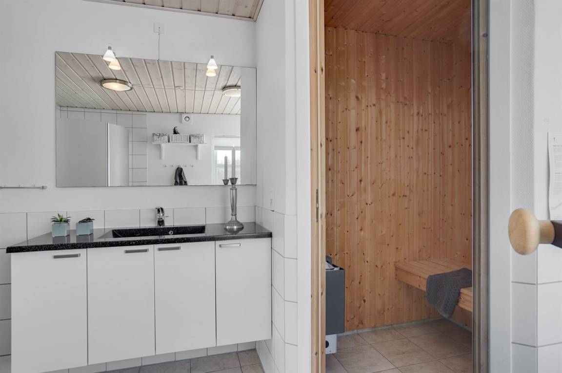 1 Badezimmer mit Duschkabine, Toilette, Sauna und Whirlpool sowie eine Gästetoilette In beiden Räumen gibt es Fußbodenheizung. In der Sauna können kann man sich so richtig entspannen.