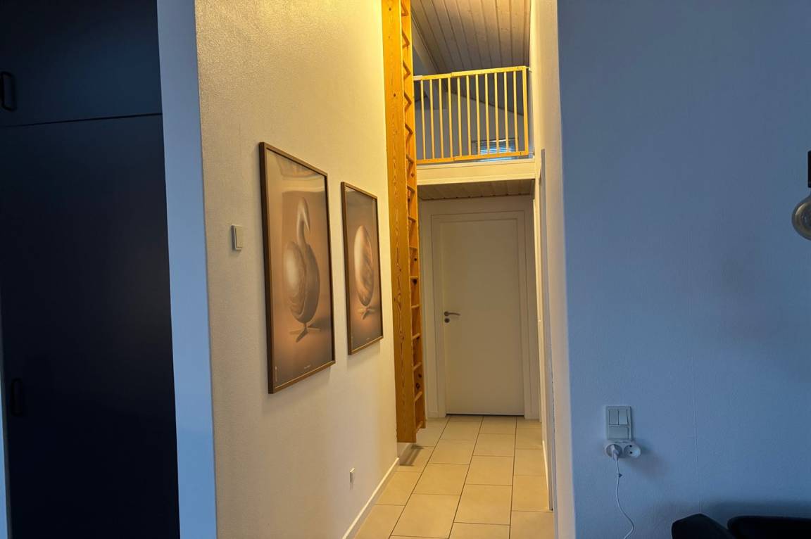 Beachte, dass sich die 2 Schlafplätze auf Matratzen im offenen Obergeschoss des Hauses befinden. Das offene Obergeschoss ist über eine feste Leiter erreichbar.