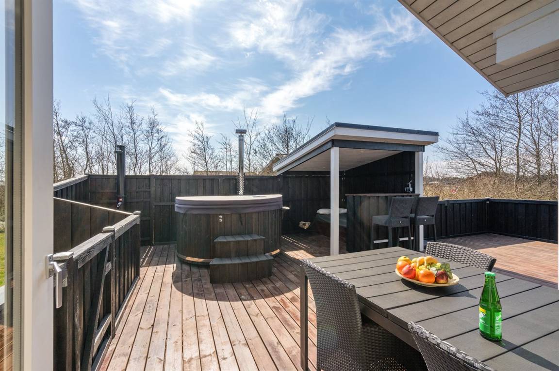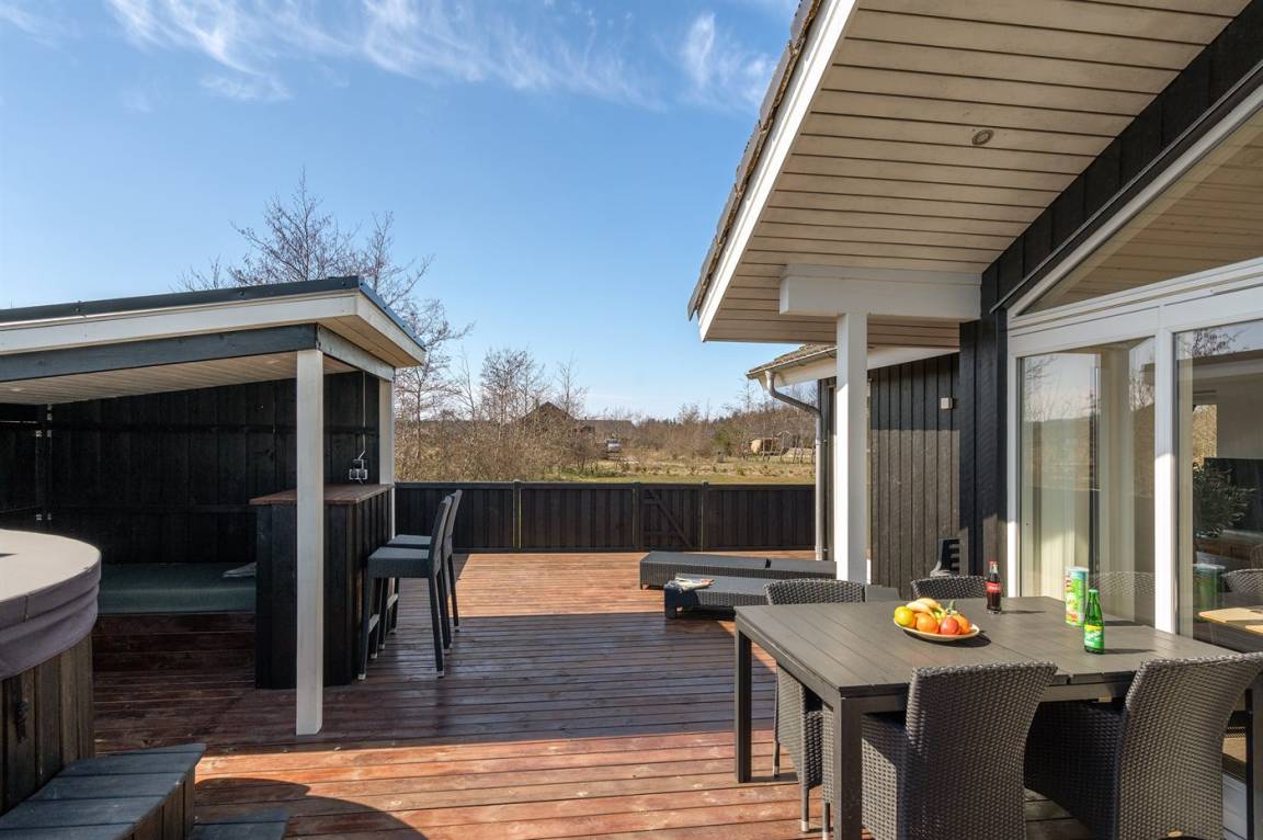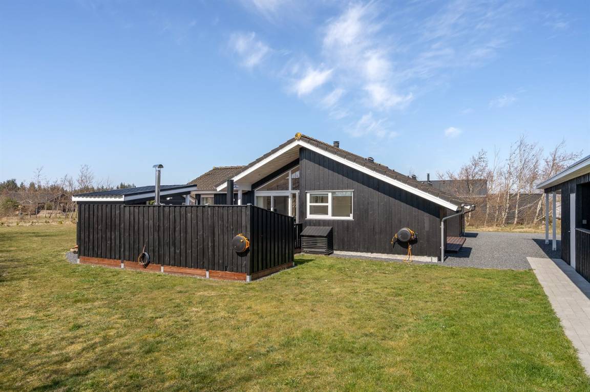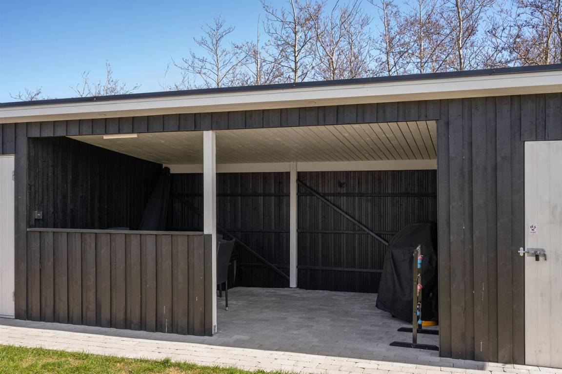 DraußenDie Ferienunterkunft liegt auf einem 1500 m² großen Naturgrundstück. Die Entfernung zum Meer beträgt 3500 m. Die nächste Einkaufsmöglichkeit liegt 3000 m entfernt. In einem Abstand von 10000 m gibt es einen Golfplatz. Es steht ein offenes Terrassenareal zur Verfügung. Außerdem gibt es überdachte Terrasse. Geräteraum. Die Entfernung zu einem Spielplatz beträgt 50 m. Es steht ein Grill zur Verfügung. Es steht ein Carport zur Verfügung. Es ist ein Ladestecker für Elektroautos installiert. Ladestecker Typ 2. Mit einer Ladeleistung von 11 kW. Parkplatz auf dem Grundstück.