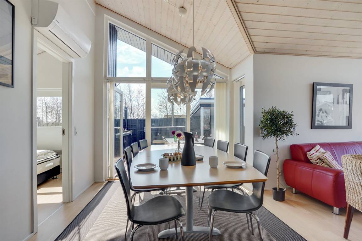Das Ferienhaus eignet sich für 6 Personen sowie 1 Kleinkind bis zu 3 Jahren. Die Ferienunterkunft hat eine Wohnfläche von 91 m² und wurde 2009 gebaut. 2021 wurde die Ferienunterkunft teilweise renoviert. Es ist erlaubt 1 Haustier mitzubringen. In der Ferienunterkunft ist eine energiesparender Luft zu Luft Wärmepumpe installiert. Die Ferienunterkunft ist mit Waschmaschine ausgestattet. Tiefkühlmöglichkeit mit 60 Liter Nutzinhalt. Es gibt außerdem einen Kaminofen. Für die jüngsten Feriengäste ist 1 Kinderhochstuhl vorhanden.