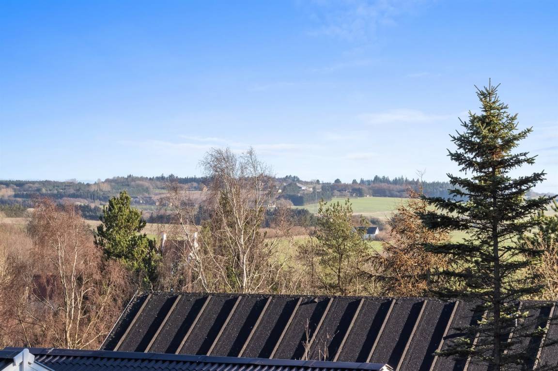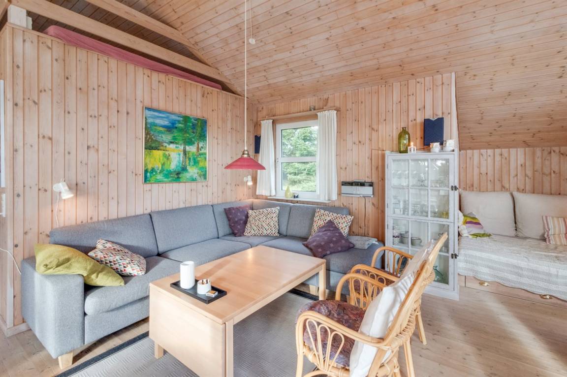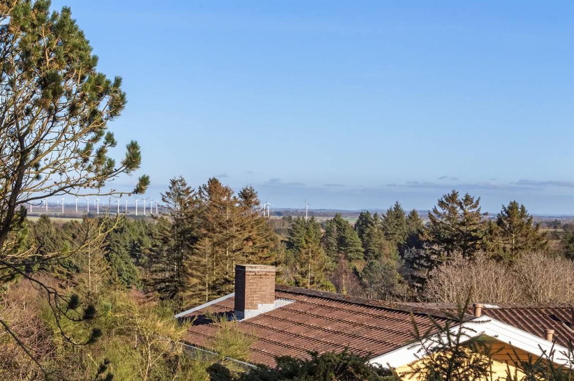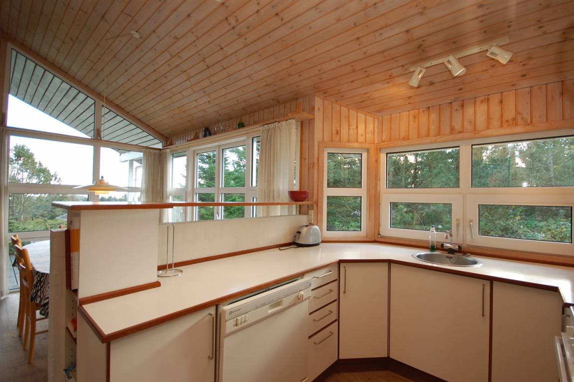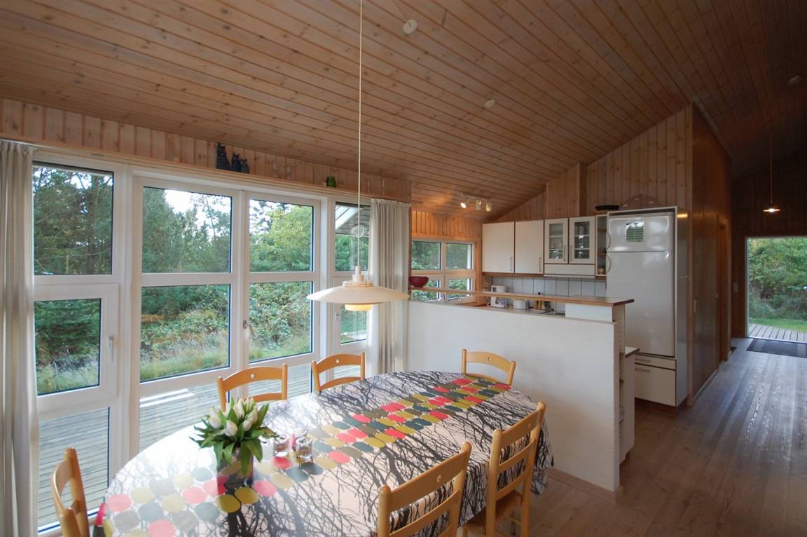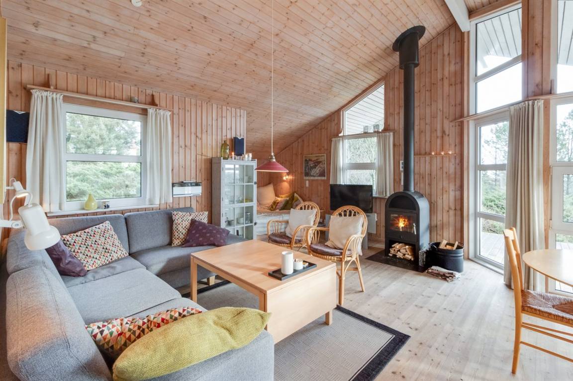 Schönes Ferienhaus hoch gelegen auf einem einzigartigen Grundstück in der Nähe von großem Naturschutzgebiet. Prachtvoller Blick auf die Landschaft vom Haus. Alkoven im Wohnzimmer mit 2 Schlafplätzen.