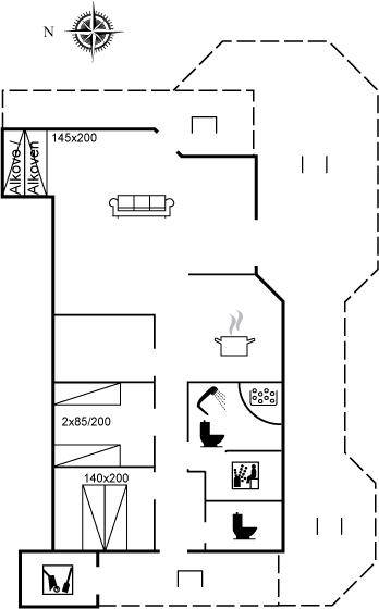 EinrichtungDas Ferienhaus eignet sich für 6 Personen sowie 1 Kleinkind bis zu 3 Jahren. Die Ferienunterkunft hat eine Wohnfläche von 78 m² und wurde 1993 gebaut. Haustiere dürfen nicht mitgebracht werden. Die Ferienunterkunft ist mit Waschmaschine ausgestattet. Wäschetrockner. Tiefkühlmöglichkeit mit 45 Liter Nutzinhalt. Es gibt außerdem einen Kaminofen.