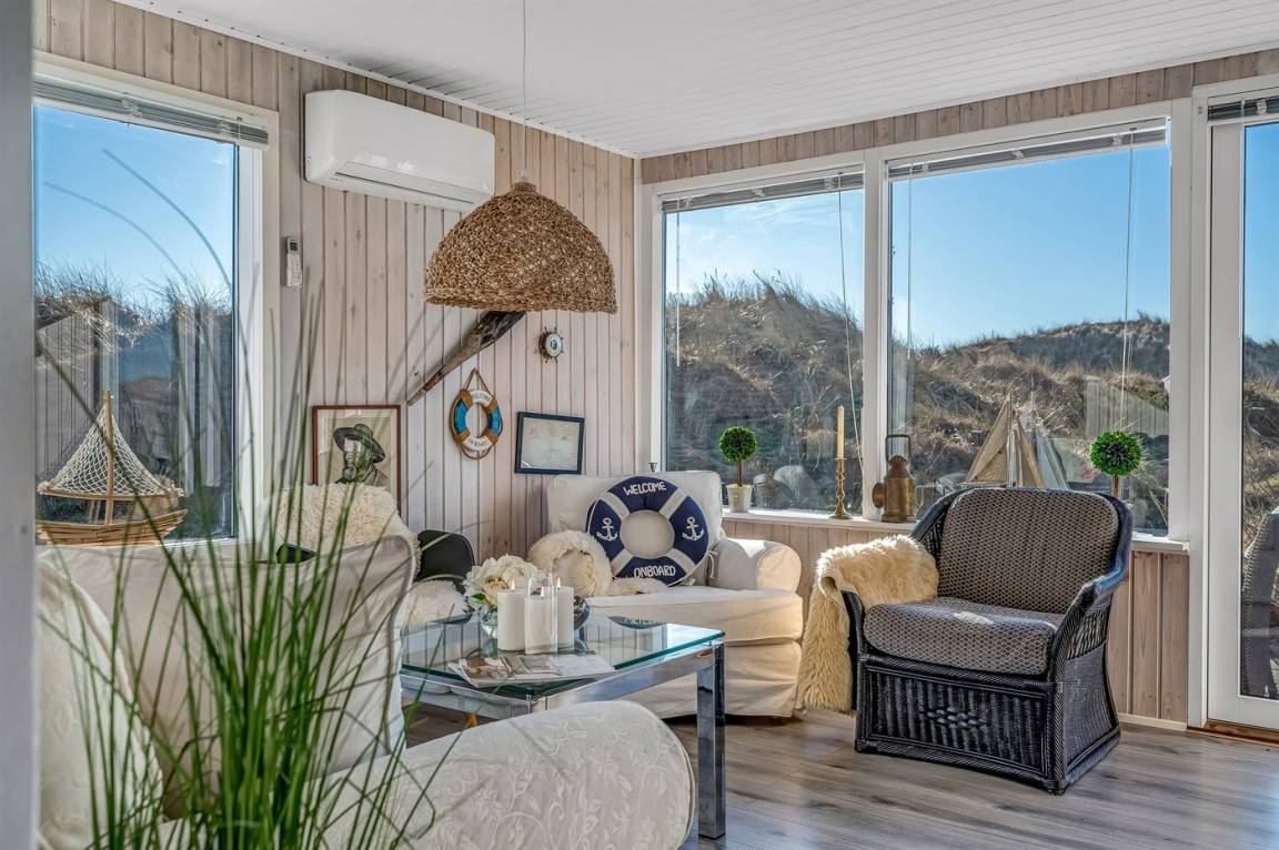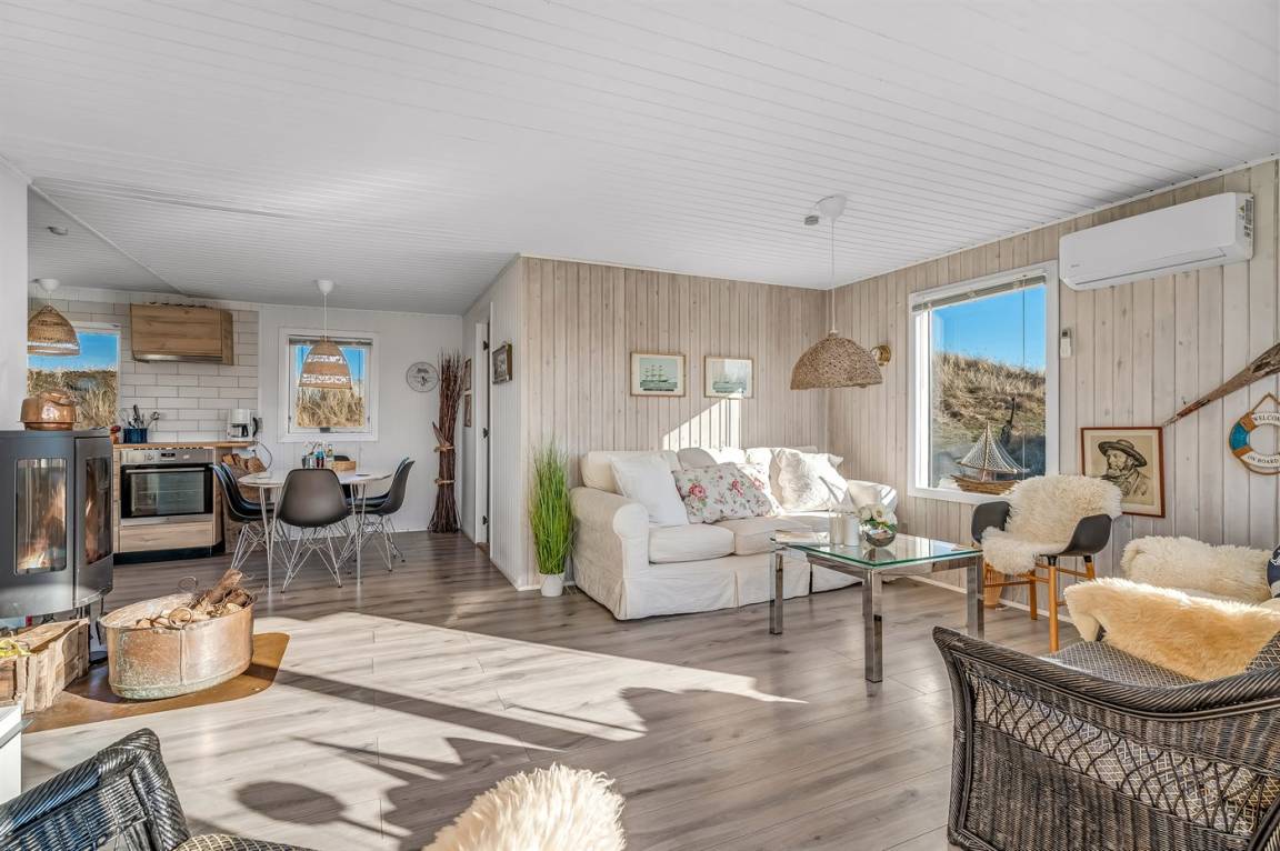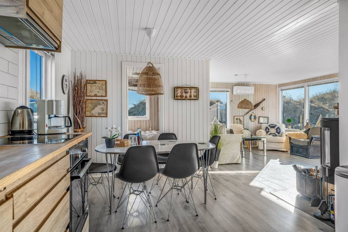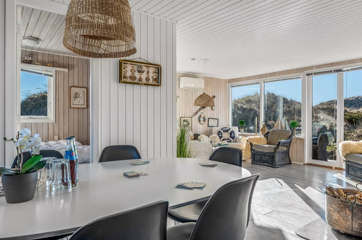 Das Haus ist gemütlich eingerichtet mit hellen Farben, klassischen Details und einer warmen Atmosphäre, die zur Entspannung einlädt. Hier kannst du deinen Morgenkaffee auf der Terrasse mit Blick über die Dünen genießen oder dich nach einem erlebnisreichen Tag in der Natur in den behaglichen Wohnbereichen zurückziehen.