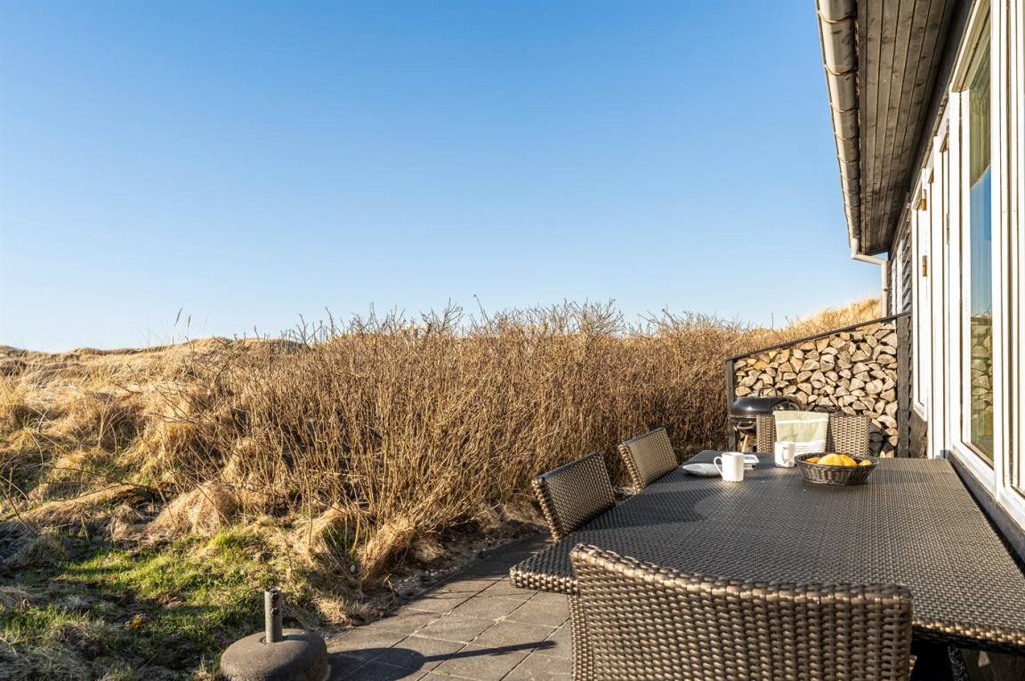 DraußenDie Ferienunterkunft liegt auf einem 3995 m² großen Dünengrundstück. Die Entfernung zum Meer beträgt 200 m. Die nächste Einkaufsmöglichkeit liegt 5000 m entfernt. Es steht ein offenes Terrassenareal zur Verfügung. Außendusche. Es steht ein Grill zur Verfügung. Es ist ein Ladestecker für Elektroautos installiert. CEE Stecker. Parkplatz auf dem Grundstück.