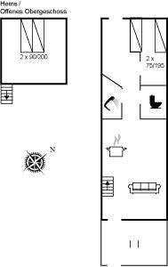 SchlafverhältnisseEs gibt einen Schlafraum. 2 Schlafplätze in einem Doppelbett. 2 Schlafplätze in Einzelbetten. 2 von diesen Schlafplätzen befinden sich im offenen Obergeschoss.