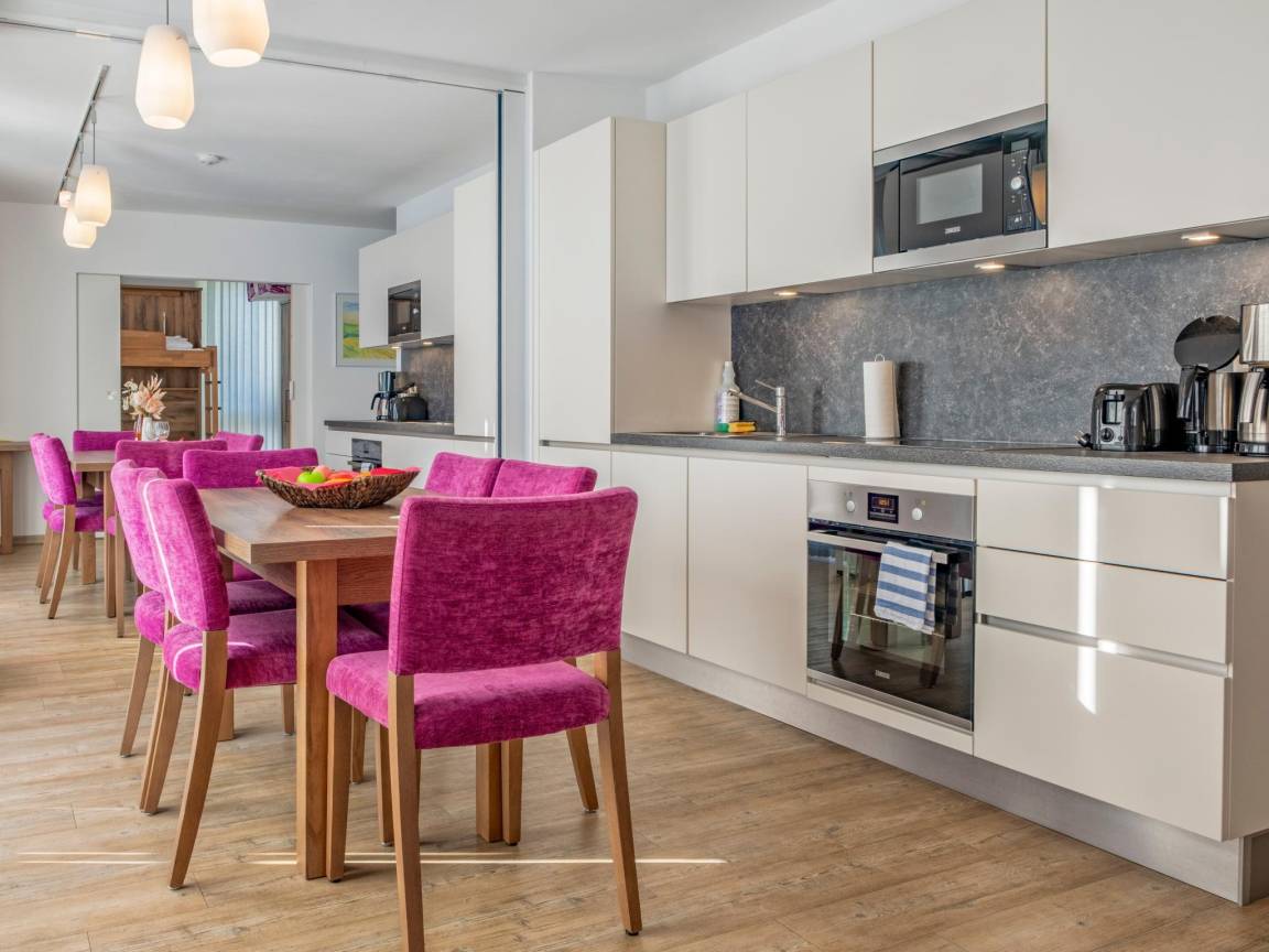 Hausbeschreibung : Dieses Ferienhaus hat insgesamt fünf Wohnungen. Sie bewohnen die gesamte erste Etage in zwei miteinander verbundenen Wohnungen, die insgesamt Platz für 12 Personen bieten. Im Erdgeschoss gibt es Platz für Ihr Fahrrad und Ihre Skier. Zwei Wohnungen, also alles doppelt! Ein schöner Raum, um gemeinsam den nächsten aktiven Urlaubstag zu besprechen. Und auch die Möglichkeit, sich für eine Weile in die eigene Unterkunft zurückzuziehen. Ideal für zwei Familien