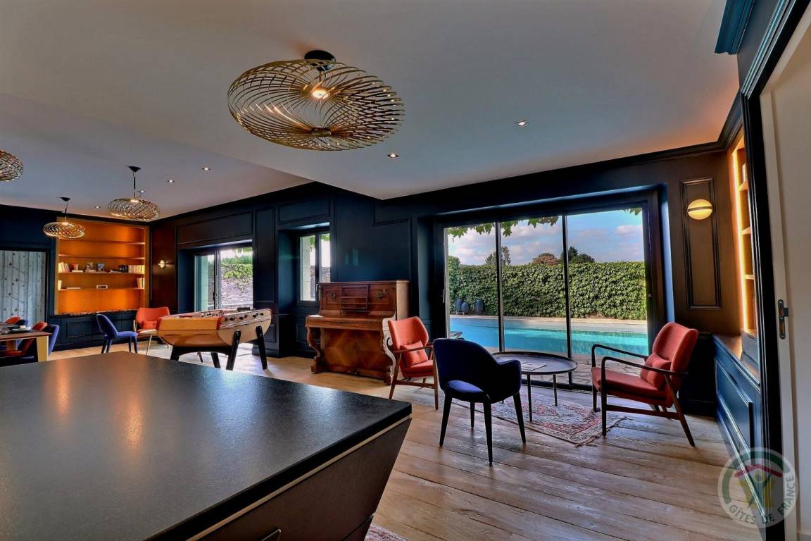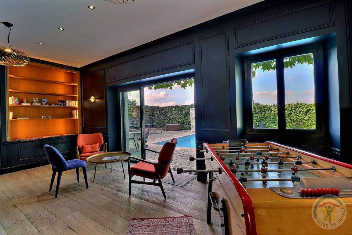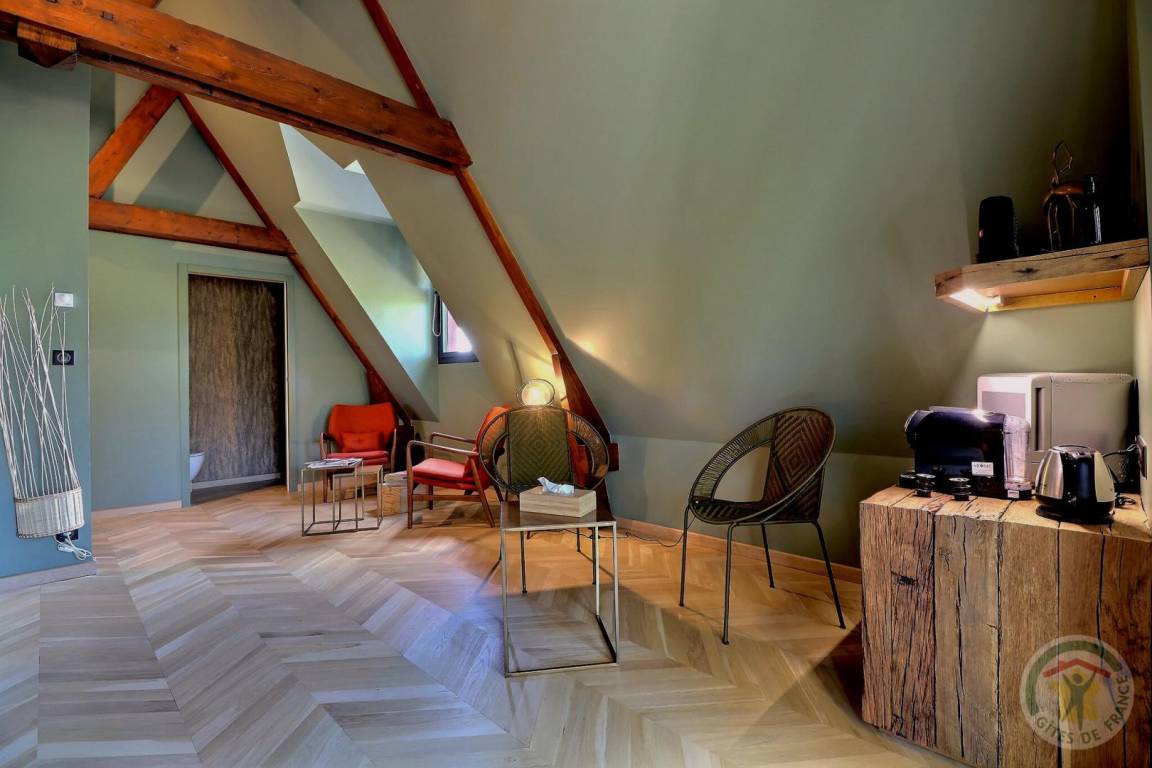 Vor Ort haben Sie Zugang zum beheizten Schwimmbad, geöffnet von Mai bis September, (Maße: 12x6 m, Prof 2m) mit Terrasse, Sonnenbaden, Grill, SPA. Im Untergeschoss der Gîte: Zimmer mit SAUNA und Dusche. Ein Tennisplatz ist ebenfalls vorhanden, diese Freizeiteinrichtungen sind kostenlos zugänglich, jedoch nach vorheriger Reservierung beim Eigentümer, um Ihr Zeitfenster zu reservieren (außer dem Schwimmbad). Im Erdgeschoss: großes Wohnzimmer mit Wohnzimmer (TV nicht mit terrestrischen Kanälen), Bibliothek und Tischfußball, Küche mit professioneller Schnellspülmaschine. Oben: der Median Schlafzimmer ist vom Wohnbereich, mit einem 160x200 Bett, einen eigenen Bad und WC und Wohnbereich hat die East Side und West Side Schlafzimmer unabhängigen Zugang von außen, privaten Dusche und WC, Bett 160x200, mit Lounge Bereich und jeweils eine private Außenterrasse. (Wäscheservice, Waschmaschine und Trockner bei Bedarf vom Eigentümer).