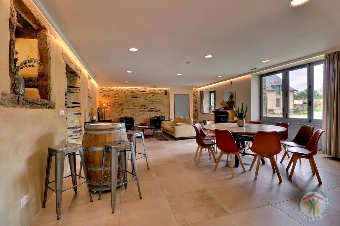 „L'accueil par la famille qui s'occupe du haras avoisinant et la propriétaire qui a évoqué l'histoire et le pourquoi cette belle rénovation d'une maison bretonne type longère et qui exprime le goût d'avoir mis sa patte à l'ouvrage. Résultat: On rentre dans une maison au charme fou et on est impressionné par la fonctionnalité et l'approche contemporain de la rénovation... un immense loft dans une maison campagnarde. Le lieu situant au fond d'un chemin, tranquillité alors que nous sommes en périphérie de Rennes à 15mns du centre ville en voiture. Qualité de la literie, des appareils ménagers, hi-fi... et meme possibilité d'organiser une réunion profesionnelle dans une salle pouvant accueillir une dizaine de personnnes.. de quoi se mettre au vert tout en profitant du lieu et d'un site d'équitation.. pourquoi pas? ? Une proprio très sympathique résidant à côté, pouvant se rendre facilement dispo pour l'horaire de check-out, super appréciable !“