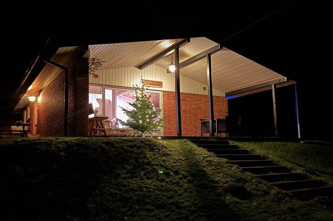 Ferienhaus in erhöhter Lage auf einem hügeligen Hanggrundstück mit einem wunderschönen Ausblick auf die Landschaft.