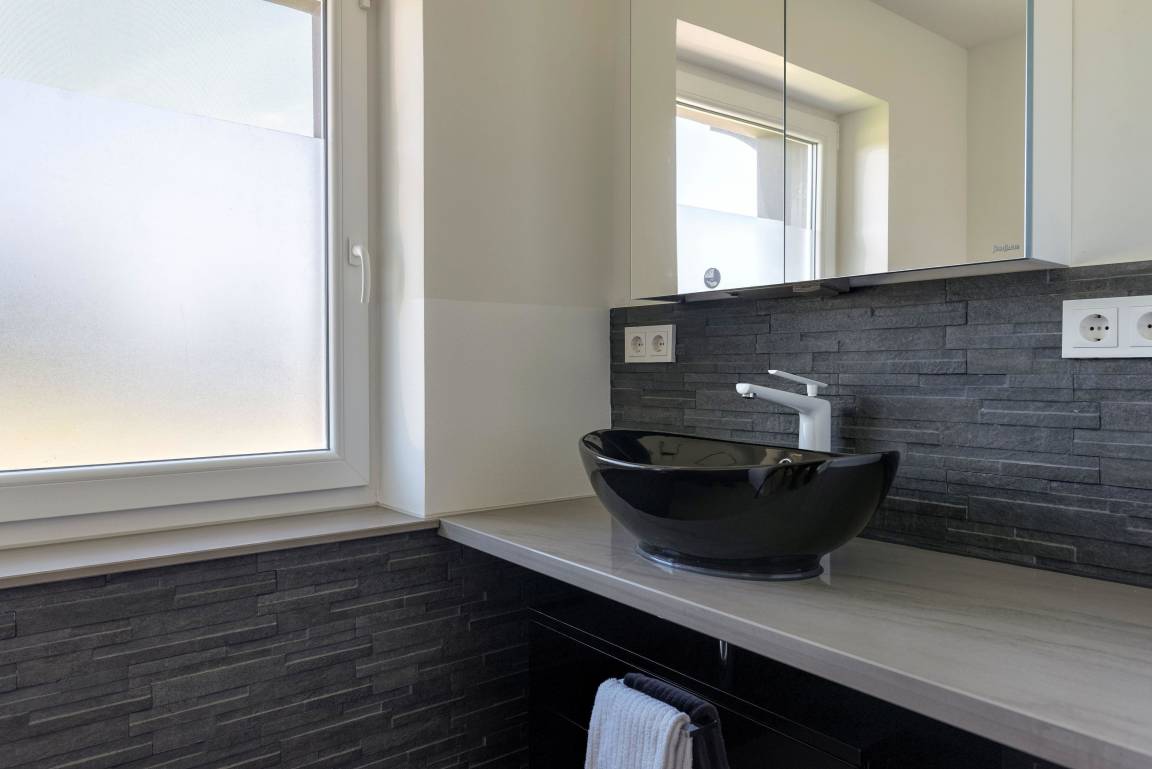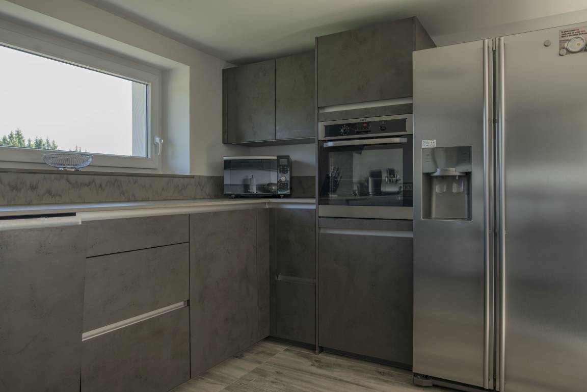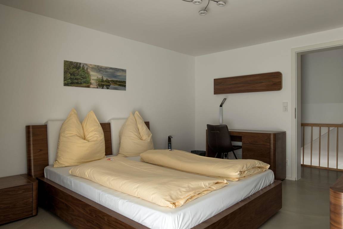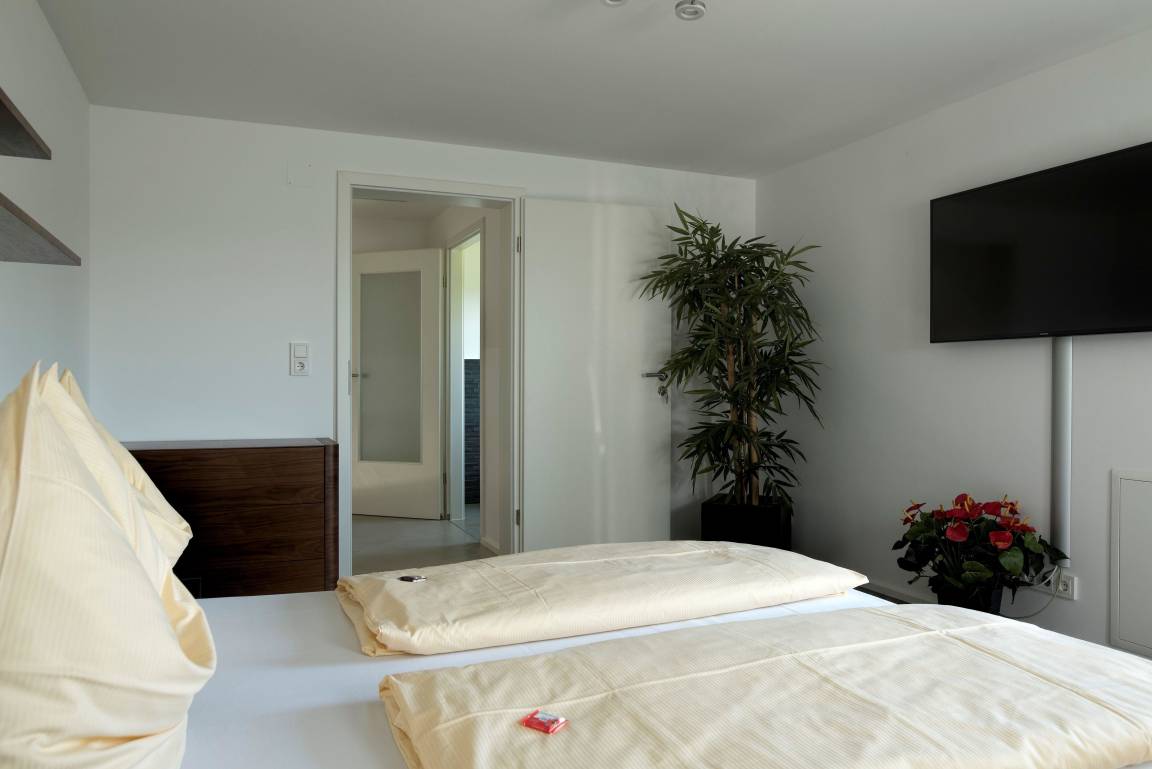 Die Wohnung erstreckt sich über zwei Etagen, wobei sich die 3 Schlafzimmer im 1. Stock befinden. Zwei der Zimmer sind etwa 16m² groß und verfügen jeweils über ein Doppelbett, einen Kleiderschrank, elektrische Rollläden und SAT-TV. Das etwas größere Zimmer (ca. 26m²) bietet neben der Grundausstattung der anderen Zimmer auch eine Schlafcouch. Der offene Wohn-/Ess-/Kochbereich nimmt das Erdgeschoss ein. Die bequeme Couch im Wohnzimmer kann als Schlafgelegenheit für 2 weitere Gäste genutzt werden. Vor dem Panoramafenster befindet sich ein großer Esstisch mit Blick auf die Berge. Die Küche ist voll ausgestattet mit Backofen, Induktionsherd und Mikrowelle. Ein Kaffeevollautomat ist mietbar. Das Bad im Erdgeschoss bietet eine ebenerdige Dusche, eine Badewanne und ein WC. Im 1. Stock gibt es zusätzlich ein WC mit Waschbecken. Die gesamte Wohnung verfügt über Fußbodenheizung für zusätzlichen Komfort.