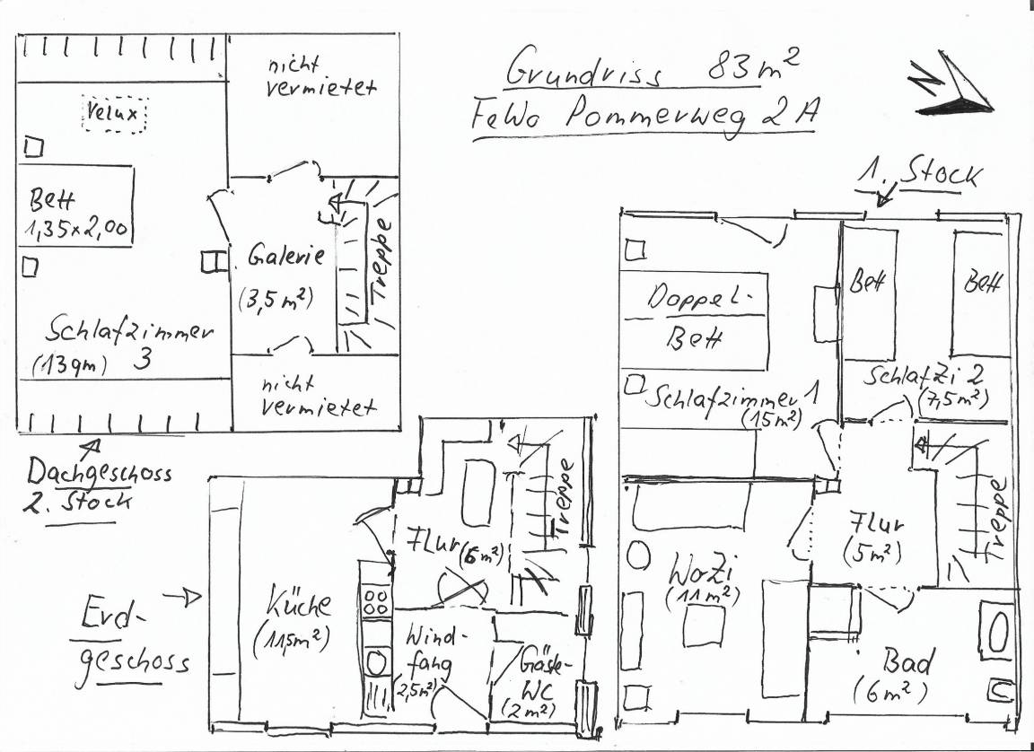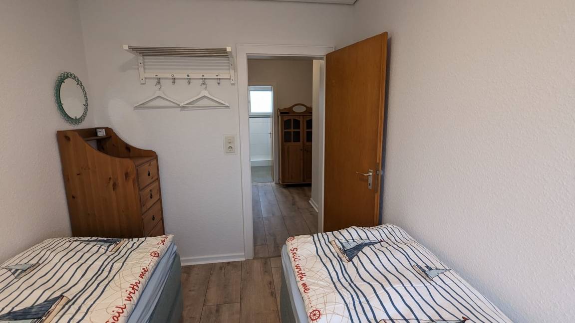 Das Haus für max. 5 Personen besticht durch einen Mix aus neuem und liebevoll aufgearbeitetem Mobiliar. Es verfügt über 1 großes Schlafzimmer mit 2 zusammenstehenden Boxspringbetten à 90 x 200 cm, 1 kleines Schlafzimmer mit 2 Boxspringbetten à 80 x 200 cm (jeweils ca. 60 cm hoch) und ein Dachstudio mit einer Art Futon Bett 130 x 200 cm (ca. 50 cm hoch).