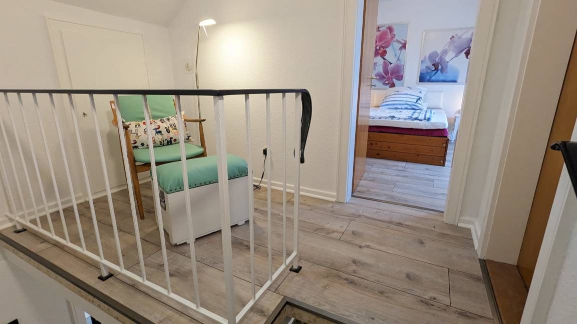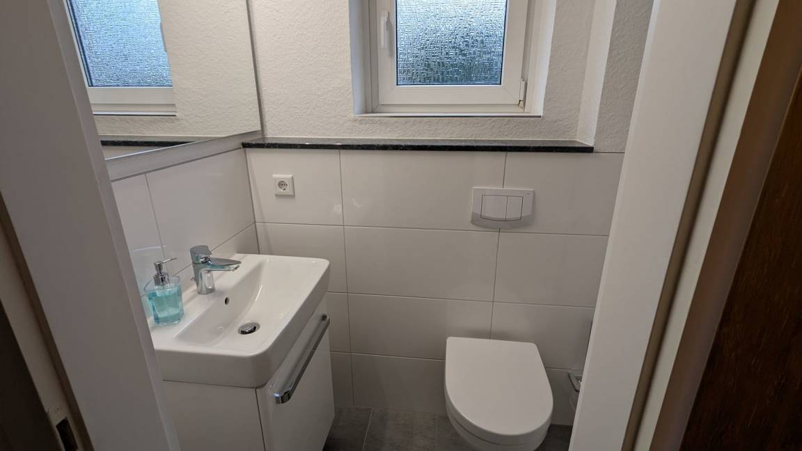 Neben einem neuen Gäste-WC im Eingangsbereich gibt es im 1. Obergeschoss ein neues Badezimmer mit Dusche und Fußbodenheizung und ein gemütliches kleines Wohnzimmer mit Smart-TV, Glasfaser-WLAN, Radio, CD-Player und portablem Bluetooth-Lautsprecher.