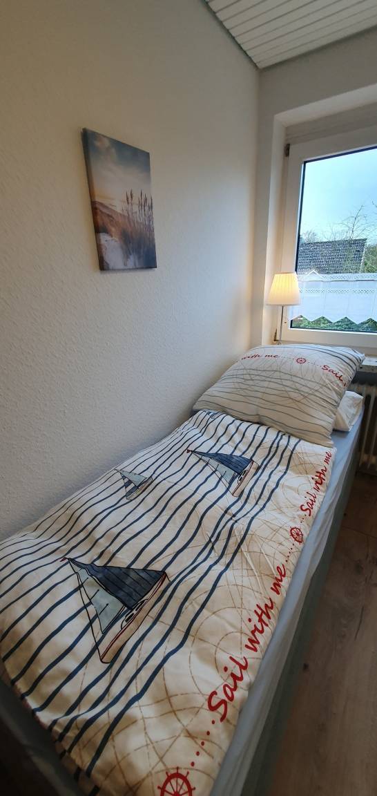 Das verkehrsgünstig in einer Sackgasse an der B 203 gelegene und im maritimen Stil eingerichtete Reihenendhaus wurde 2022/23 umfassend renoviert und verfügt über neue Bäder und neue, bequeme Boxspringbetten. Die Unterkunft eignet sich aufgrund der zentralen Lage bestens als Startpunkt für Ausflüge an Nord- und Ostsee und ins ganze Land.