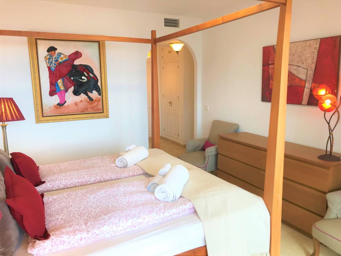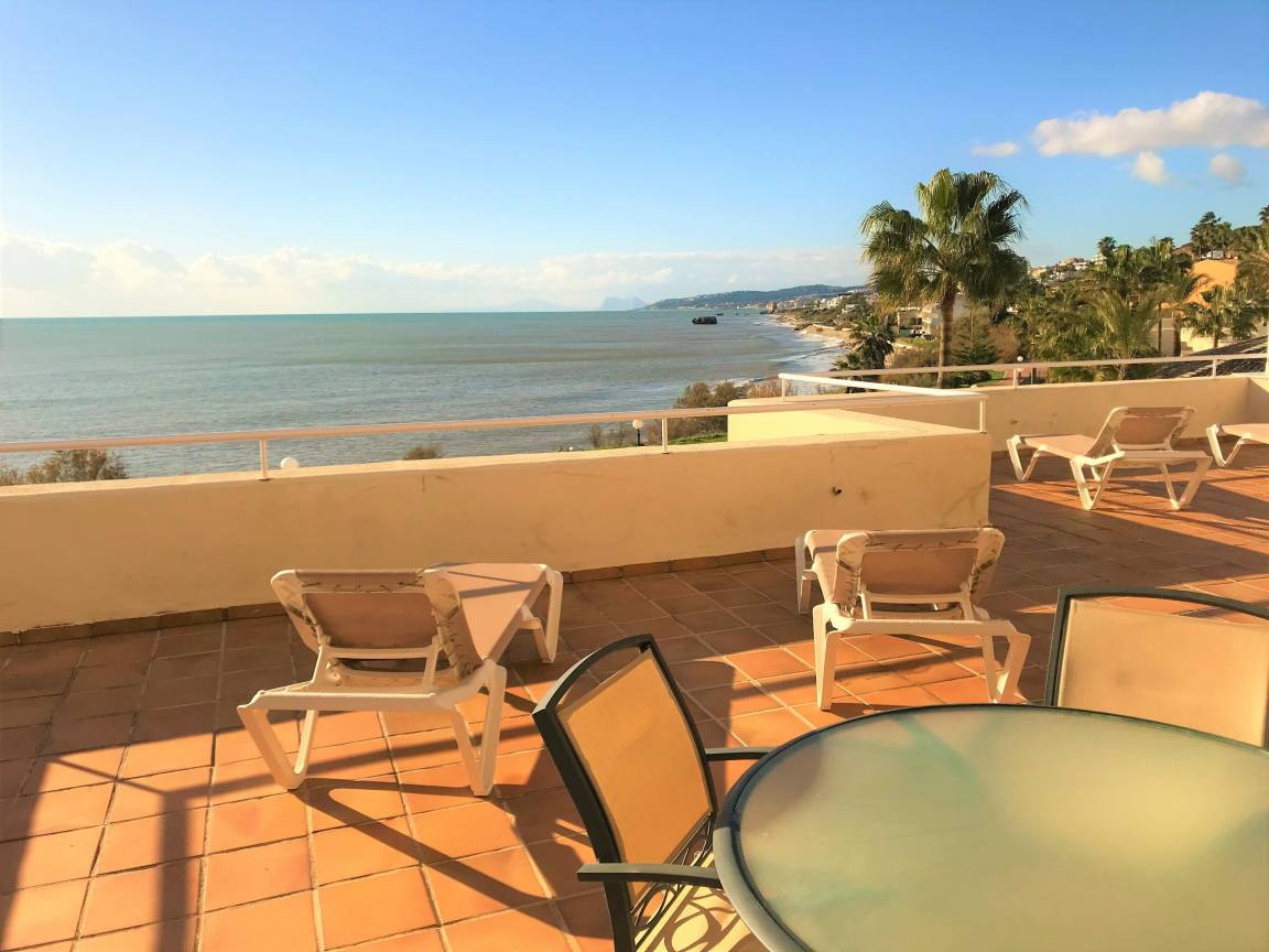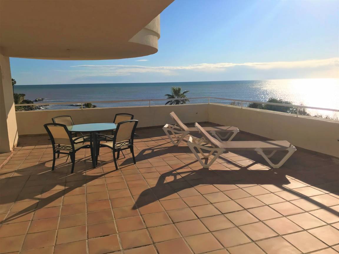BERMUDA BEACH 7 ist eine sehr grosszügige 2-Schlafzimmer-Wohnung direkt am Strand mit frontalem PANORAMA-Ausblick auf Meer und Strand bis nach Afrika und Gibraltar.