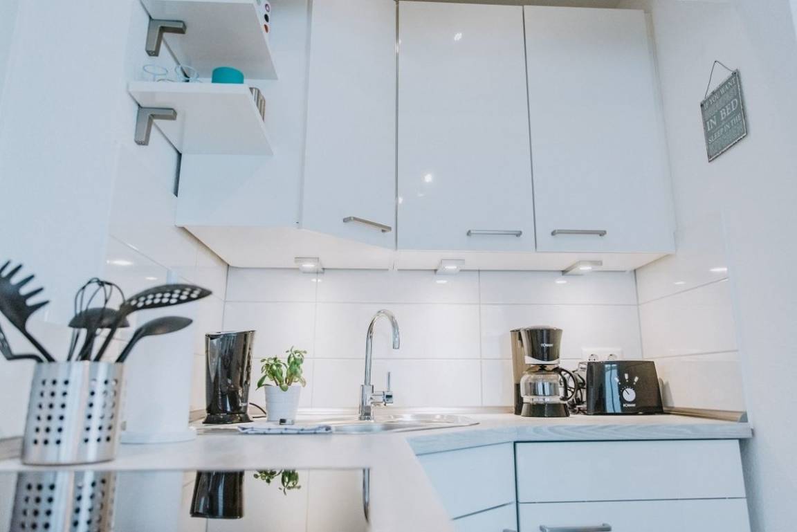 Die neue, hochwertige Küchenzeile im Wohnbereich ist mit Backofen, Geschirrspülmaschine und allen nötigen Küchenutensilien komplett ausgestattet. Um ihre Mahlzeiten einzunehmen können Sie an dem Esstisch in dem Raum Platz nehmen.
