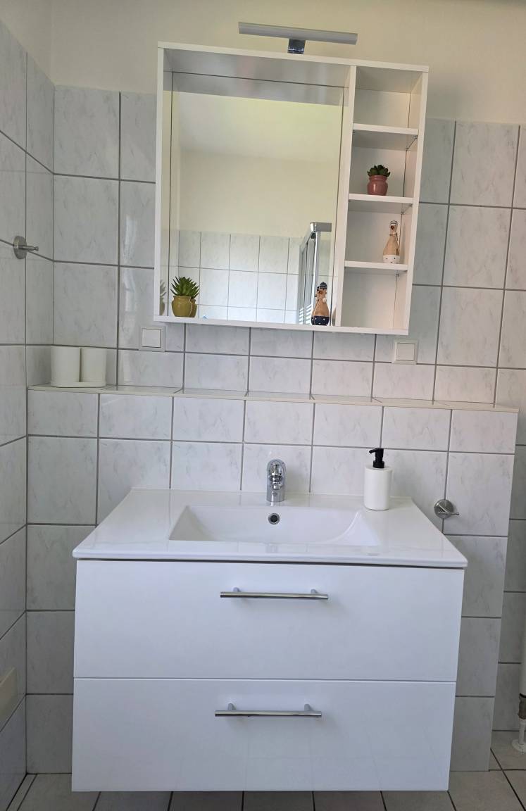 In der Wohnung ist eine Erstausstattung vorhanden. Dazu gehören Toilettenpapier, Geschirrspültabs, Spültuch, Spülmittel und Handseife.