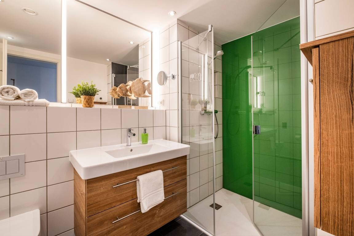 Sanitär: Duschbad, Handtuchheizung, Haar-Föhn, Gäste-WC